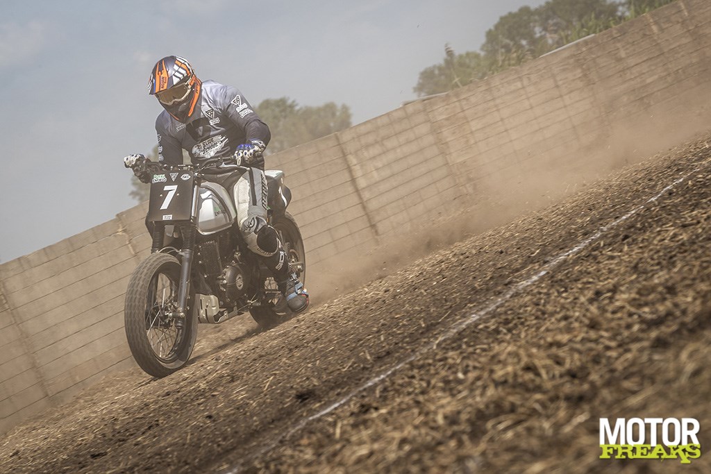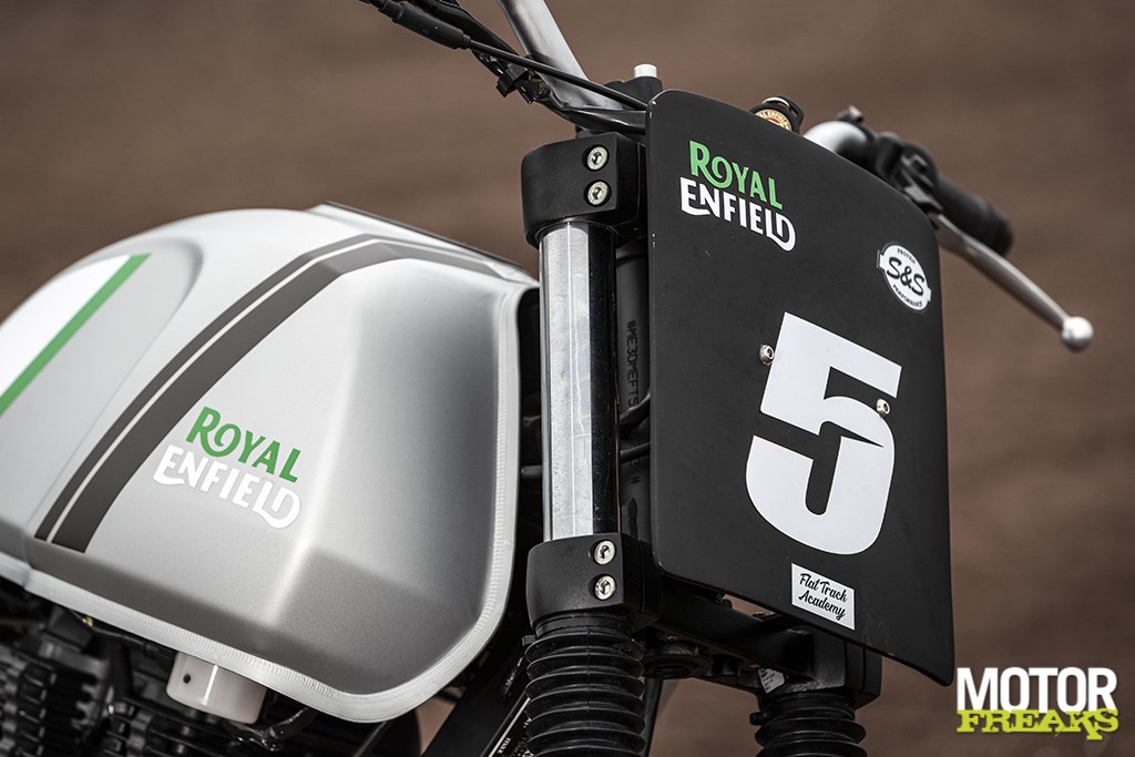 Precies dáár ligt volgens Royal Enfield Custom & Motorsport EU & USA Rahul Sinroja de link met het flat trackracen. Net als Enfield is ook flat track super laagdrempelig. “Er zijn maar heel erg weinig mensen die op een circuit een 200pk motorfiets kunnen mannen, laat staan dat ze de financiële middelen hebben om ermee te racen. En om lol te beleven aan motorsport heb je die 200 pk ook niet nodig, alleen gelijkgestemden om samen mee een baan op te gaan. Wij zijn dan ook niet high-end voor de happy few, maar low-end voor het brede publiek gegaan. Omdat iedereen voor een paar centen van motorsport zou moeten kunnen genieten.”
