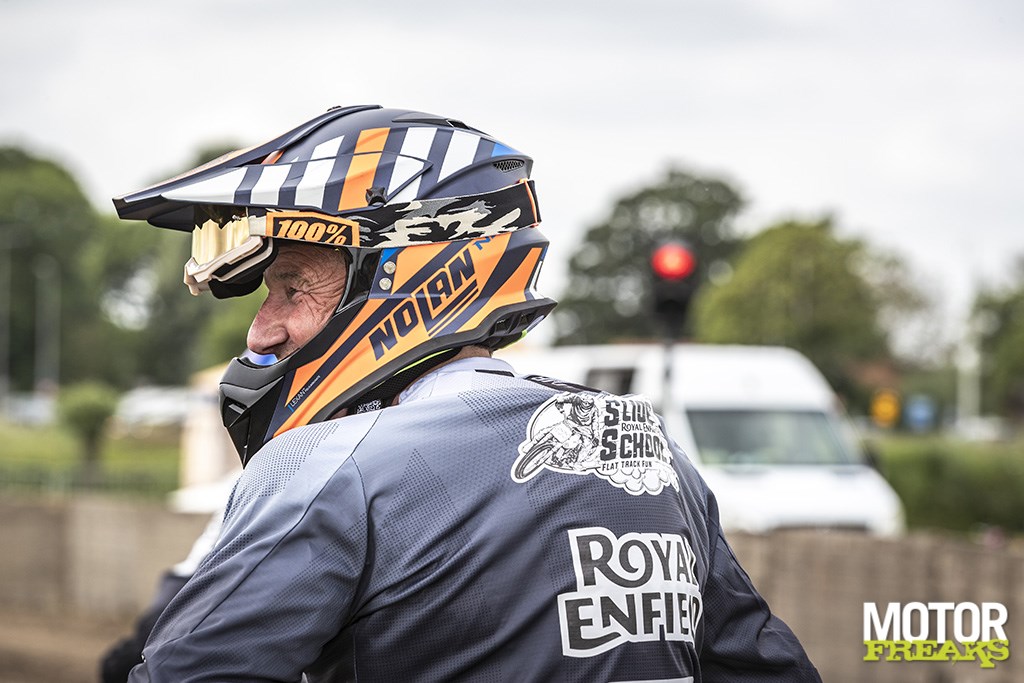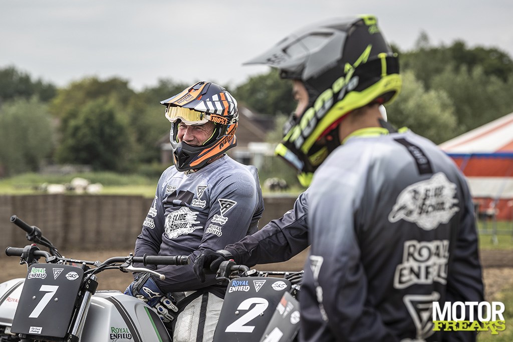 Nu is dat leuk voor de statistieken, maar da’s niet de reden dat Enfield de stap richting Flat track motorsport heeft gezet. “Onze missie is het om mensen kennis te laten maken met de wereld van puur motorrijden”, zegt Royal Enfield Marketing Western EU Michaël Saïdi tijdens de presentatie voorafgaand aan de training. “We houden simpelweg van het gevoel er op een Enfield op uit te trekken,