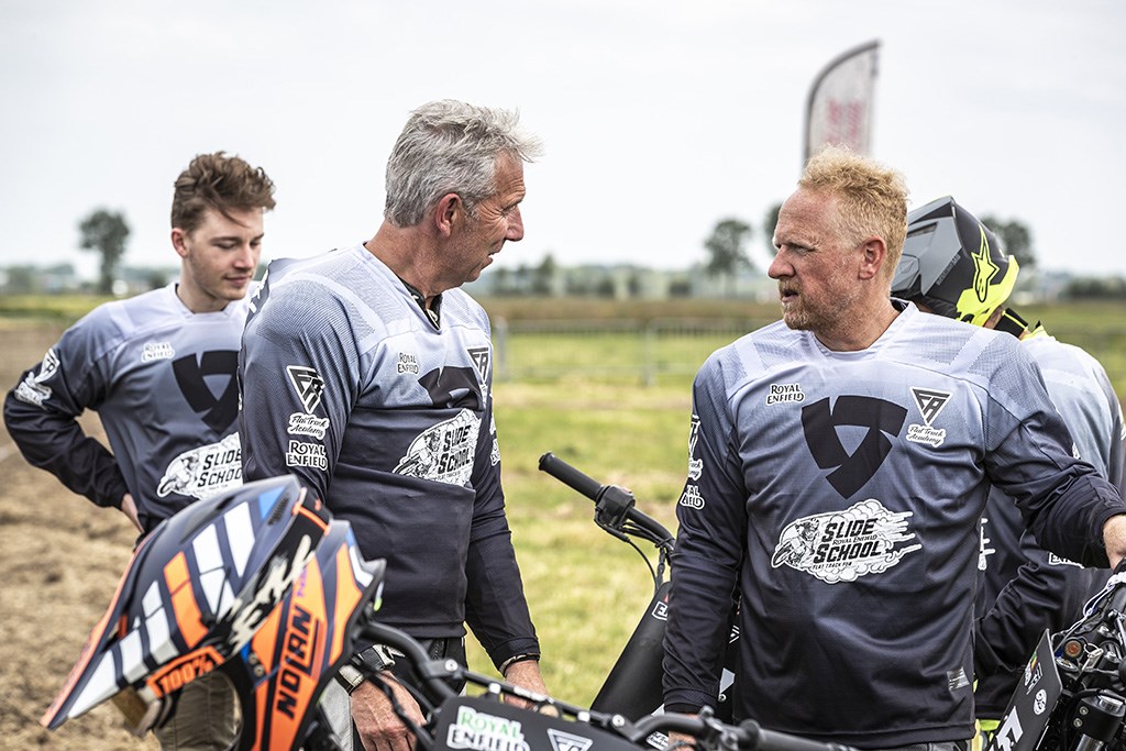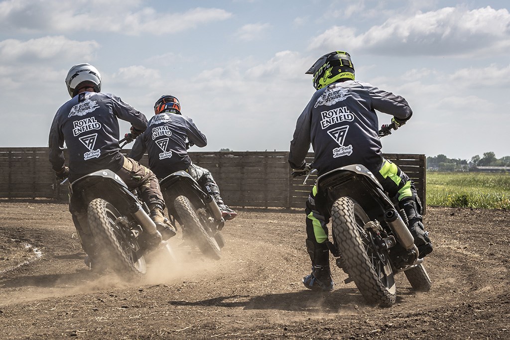 De Royal Enfield Slide School is de eerste en enige officiële van de Brits/Indiase fabrikant in de Benelux, na eerder al zeer succesvolle Slide Schools in onder andere India, Thailand en Italië te zijn gestart. Om je een idee te geven: alleen al in thuisland India heeft de Slide School tot nu toe 650+ rijders getraind. Voor de Slide School Benelux is Royal Enfield een samenwerking met de Flat Track Academy van flat trackracer en KNMV MT-2 motorsport instructeur Maikel Dijkstra aangegaan, met steun van importeur Motomondo en Star Twin. Trainen kan op drie verschillende niveau’s, met elk een eigen machine.
