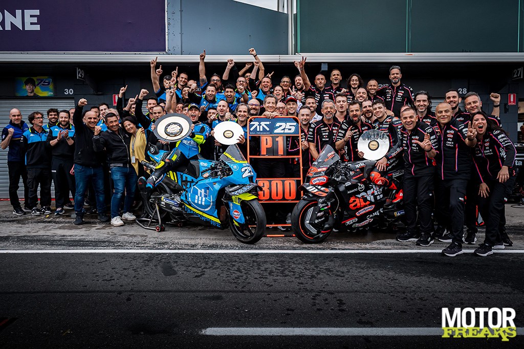 Aprilia sloot 2025 af als tweede in het constructeurkampioenschap met 418 punten. De mijlpaal van 300 GP-zeges – inmiddels 302 – bevestigt bovendien Aprilia’s status als meest succesvolle Europese fabrikant in de Grand Prix-geschiedenis.