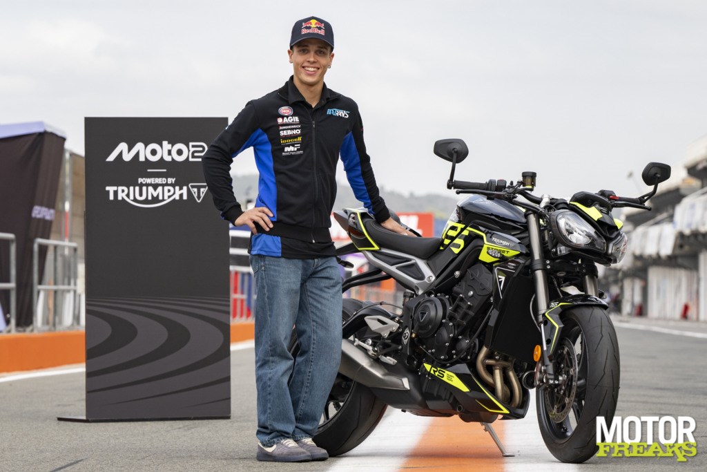 Moreira ontving zijn unieke, speciaal geliverde Street Triple 765 RS tijdens de seizoensfinale in Valencia. Hij reageerde zichtbaar trots: