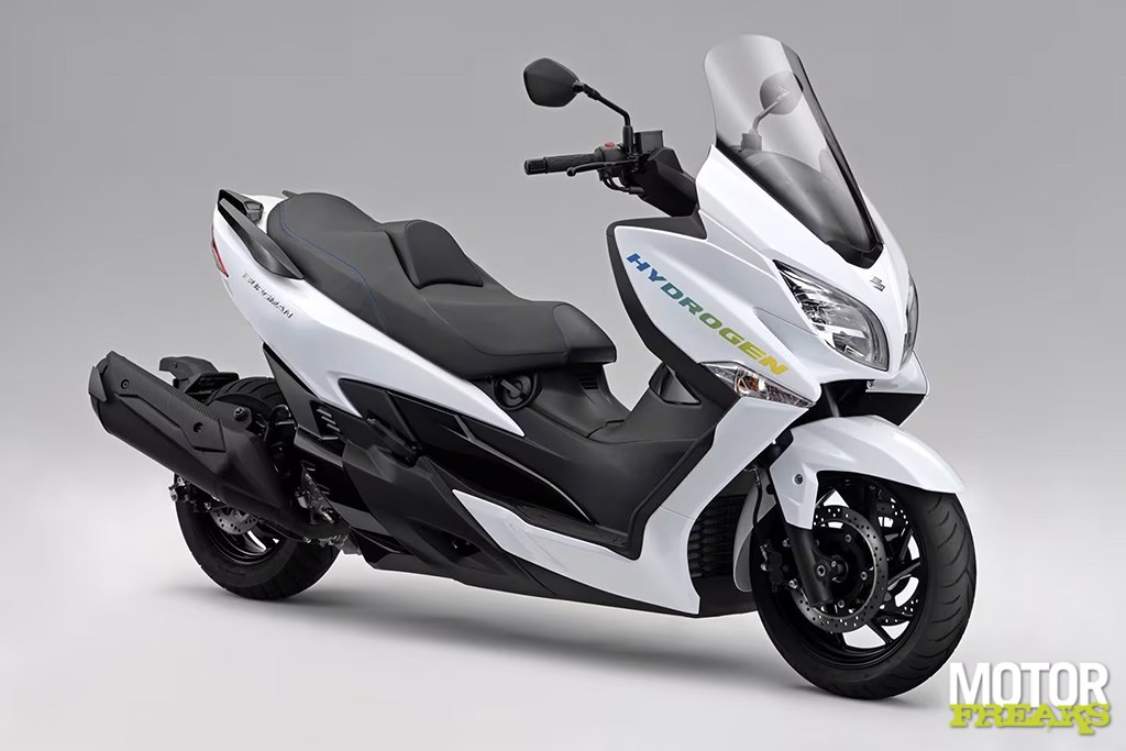 Het is een gemodificeerde Burgman 400 scooter, en als dat bekend klinkt dan komt dat omdat Suzuki al sinds 2010 verschillende waterstof-aangedreven Burgman scooters laat zien. Wat echter veranderd is, is hoe die waterstof wordt gebruikt.