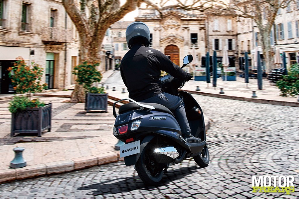 De 125 cc viertaktmotor is verder verfijnd en voldoet nu aan de Euro 5+-norm. Suzuki claimt dat dankzij aangepaste CVT-afstellingen de scooter bij lage snelheid levendiger reageert en meer trekkracht biedt in de toerenkelder en het middengebied – precies waar je dat in de stad nodig hebt. Het gemiddelde verbruik ligt op 1,9 liter per 100 km, volgens Suzuki.
