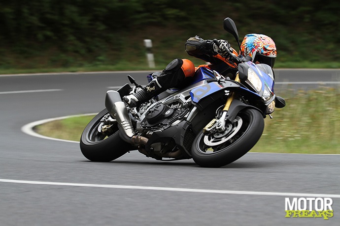 e positionering van de voetsteunen ten opzichte van het zadel is bij beide motoren van hetzelfde sportieve niveau als de gekuipte modellen, enkel het brede stuur maakt de zit iets comfortabeler. De Tuono V4 doet het hier net wat beter, hoewel de verschillen best klein zijn.