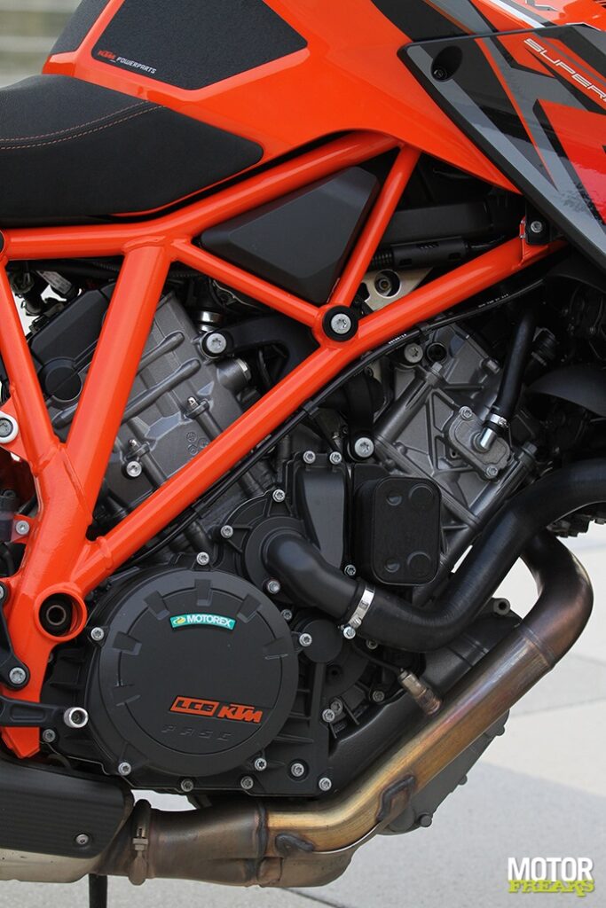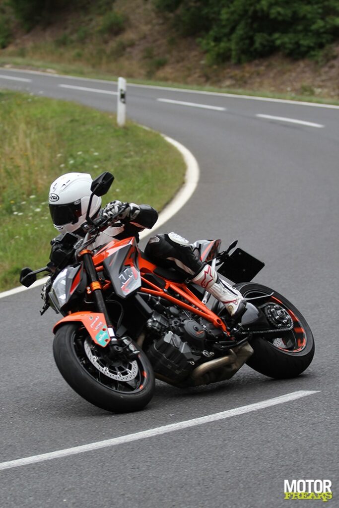 at betekent dat alle vermogens en koppels dáár zitten waar ze horen, daar waar je er het meest aan hebt. En nemen we bijvoorbeeld Honda’s filosofie even ter harte: het gaat er om waar je in de praktijk het vaakst mee rijdt, niet per sé om het hoogst haalbare. Zit wat in, maar voor de goede orde heeft KTM tóch maar gezorgd dat die lat hoger ligt dan de anderen. Schappelijk.
