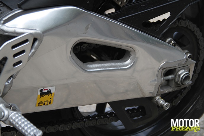 | Achterrem | Enkele schijf 220 mm, eenzuiger remklauw, Race-ABS | enkele schijf 240 mm, Brembo 2-zuiger remklauw, Bosch C-ABS | enkele 220 mm schijf, Brembo 2-zuiger remklauw, ABS |