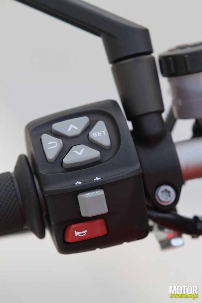 En dan nummer drie. De hoofdreden dat we ‘m meenamen staat breed uitgemeten op deze pagina. Volgens opgave twintig pk achter op de KTM, in de praktijk een halve. Qua koppel wel ietsje minder bedeeld, maar dat wordt weer kinderlijk eenvoudig teniet gedaan door de extra hoeveelheid cilinders. En de motor is ranker en compacter dan de Super Duke, wat ‘m qua hanteerbaarheid nog best eens in de kaart zou kunnen spelen. Tel daarbij op dat de motor is voorzien van dynamische vering bovenop de mappings die er uiteraard ook op zitten, evenals eenvoudig