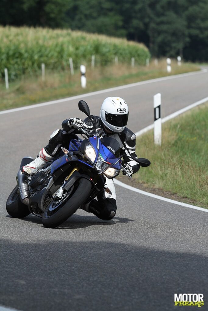 fgetopt met een slechts marginaal mildere geometrie (dan de RSV) en een set Supercorsa’s is er niets wat de Tuono ook maar kan volgen. Ongenaakbaar. Alleen… is het genoeg?