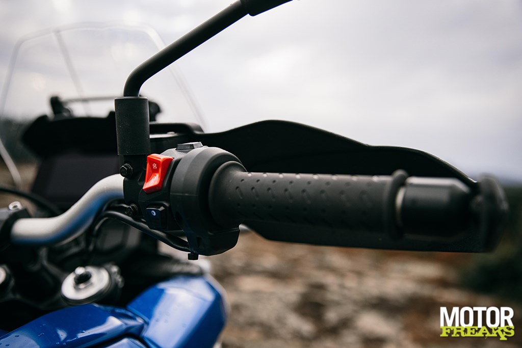 Ondanks de lange veerweg duikt de voorkant maar weinig in als de dubbele schijven hard aan het werk worden gezet, terwijl ook de achterkant onder volle acceleratie niet bezwijkt. Het brede stuur stelt je in staat om snel en gemakkelijk correcties te maken, hoewel de Tuareg in principe zeer intuïtief stuurt – de fiets volgt zonder morren de commando’s van zijn rijder op. Hard en snel een bochtige weg nemen is geen enkel probleem, het hoge en brede stuur zorgt ervoor dat met speels gemak van de ene naar de volgende bocht kan worden gestuurd. Nog even over die dubbele schijven: ik beschouw mezelf offroad niet ervaren genoeg om te kunnen zeggen of die twee remschijven in het zand overkill zijn, maar ik weet wel dat ze een sleutelrol spelen in de fun die je met de Tuareg hebt op straat. De Tuareg is trouwens standaard ook met cruise control uitgerust, terwijl opmerkelijk genoeg handvatverwarming ontbreekt – zelfs als accessoire.