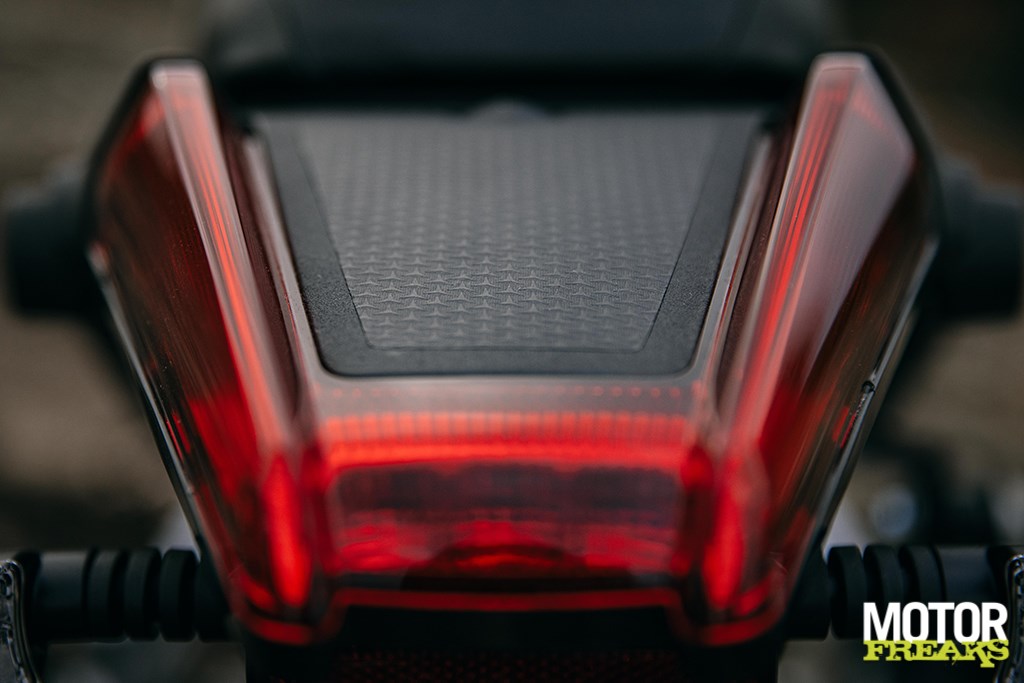 De kortere eerste versnelling en beduidend kortere eindoverbrenging hebben ervoor gezorgd dat de fiets in de eerste twee versnellingen met speels gemak op het achterwiel te zetten is, maar hebben de 207 kilo rijklare fiets ook een echt potente acceleratie gegeven, met name de derde en vierde versnelling tijdens de snelle runs over de grotendeels (nog) droge kustwegen om de opkomende onweersbui te ontwijken (Wat ons niet lukte, niet bepaald). Je voelt duidelijk dat het koppel ergens bij 7.000 tpm z’n piek