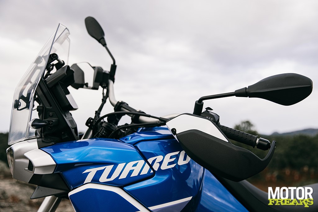 Om te beginnen: de manier waarop Piaggio’s ontwerpteam onder leiding van Mirko Zocco – die recentelijk ook voor de Moto Guzzi V85-TT, de Aprilia Tuono V4 1100 en de RSV4 V4 1100 verantwoordelijk is geweest – zich erop heeft geconcentreerd om de Tuareg 660 uitnodigend en toegankelijk te maken voor rijders van alle lengtes, zowel zittend op het zadel bij asfalt als staand op de steunen wanneer de wegen onverhard zijn, waardoor dit een echt vertrouwenwekkende allrounder is.