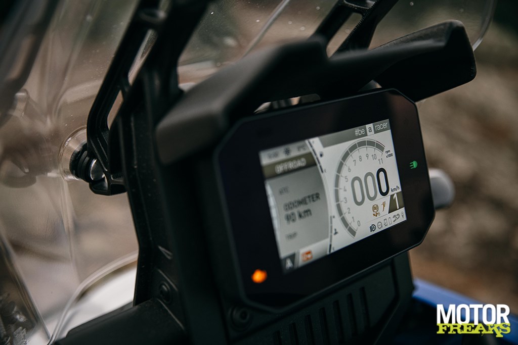 Blij dat die Pirelli bandjes 't zo goed doen op nat asfalt en in zeikende regen(voor kan ook worden uitgeschakeld), de tractiecontrole op standje 1 en de gasrespons op de vriendelijkste stand is in de offroad sectie dan ook kinderspel. De Tuareg 660 is een fiets die geschikt is voor een zeer breed spectrum aan motorrijders, ervaren offroad rotten (waar ik mij absoluut niet onder schaar) kunnen het maximale uit de offroad performance halen, maar tegelijkertijd is het een heerlijke vertrouwenwekkende fiets voor offroad beginners (zoals ik). Dit is een fiets waarmee je offroad avontuur kan beginnen, en naarmate je meer ervaren wordt zal je meer uit de motor kunnen halen. Waar je ook van profiteert is de toegankelijkheid van het elektronicapakket – Piaggio is op dat vlak altijd al toonaangevend geweest door gebruikersvriendelijke elektronica te ontwikkelen voor de Aprilia en Moto Guzzi modellen en de Tuareg 660 is hier een fijn voorbeeld van.