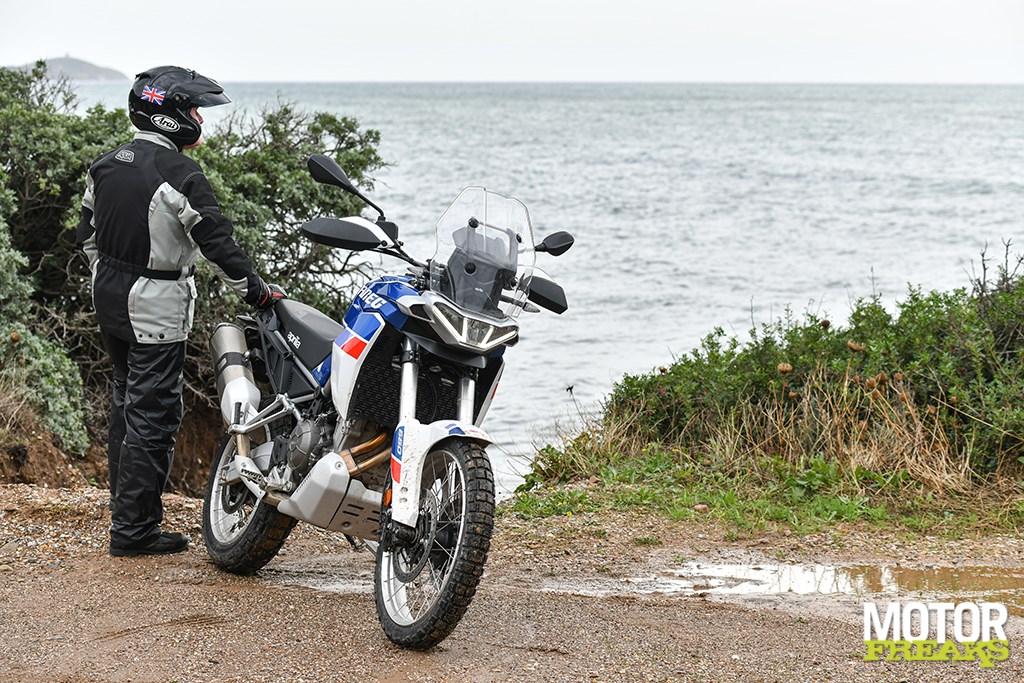 Voor 2022 maakt de Tuareg echter z’n comeback, als derde model van het nieuwe 660 twin platform, naast de eerder genoemde RS 660 en Tuono 660. De mogelijkheid om kennis te maken met Aprilia’s nieuwste Dual Purpose model stond op het normaal gesproken zonovergoten Sardinië gepland, maar bleek om twee redenen behoorlijk gecompliceerd te zijn. Zo was, nadat eerdere pogingen het event te organiseren waren geschrapt, Italia definitief failliet gegaan, wat de toegang tot het eiland aanzienlijk had beperkt. Het tweede punt was echter nog veel erger: de droogteperiode van ruim twee maanden kwam precies op onze rijdag op spectaculaire wijze tot een eind, met ongekende onweersbuien die het 37 kilometer offroad traject in een kolkende rivier had veranderd en de resterende 170 kilometer over het westelijke deel van het eiland beslist vochtig was. Uiteindelijke rit van 90 kilometer tussen de regenbuien door was slechts een voorproefje, niet echt een test – maar smaakte absoluut naar meer. Hier is waarom.