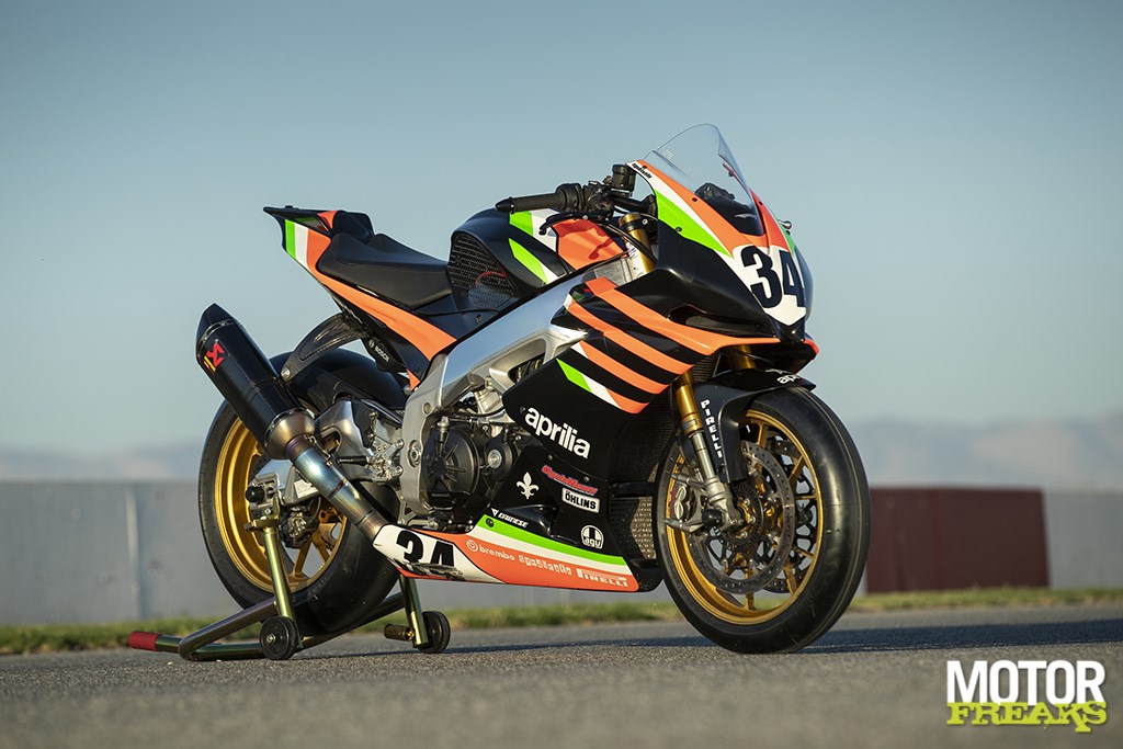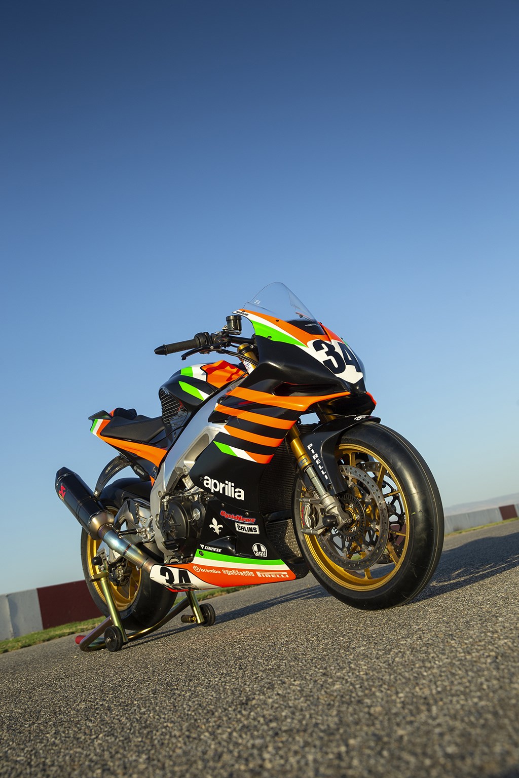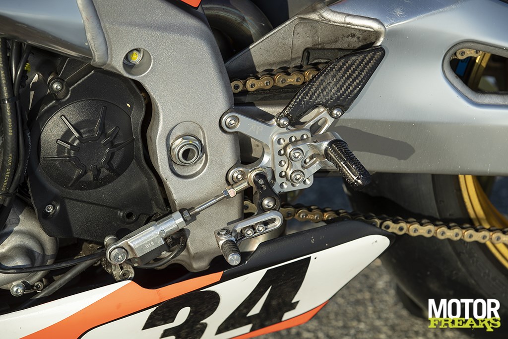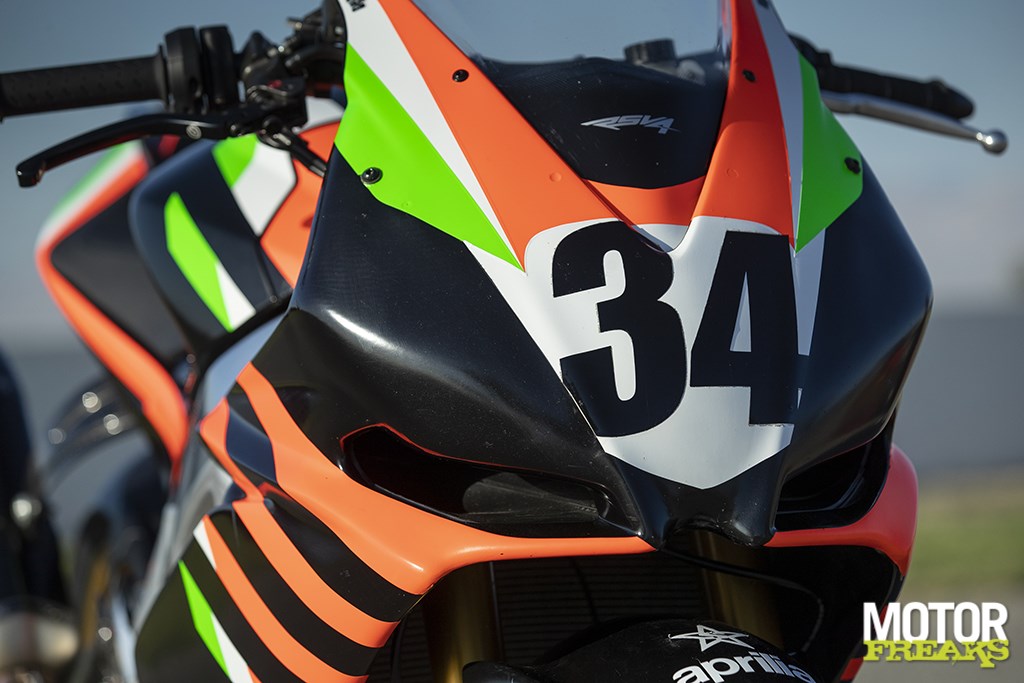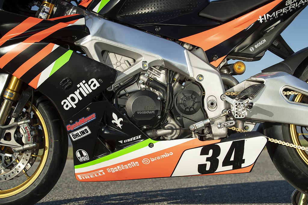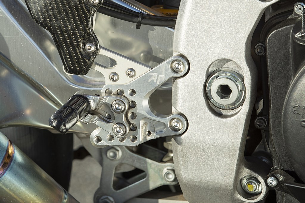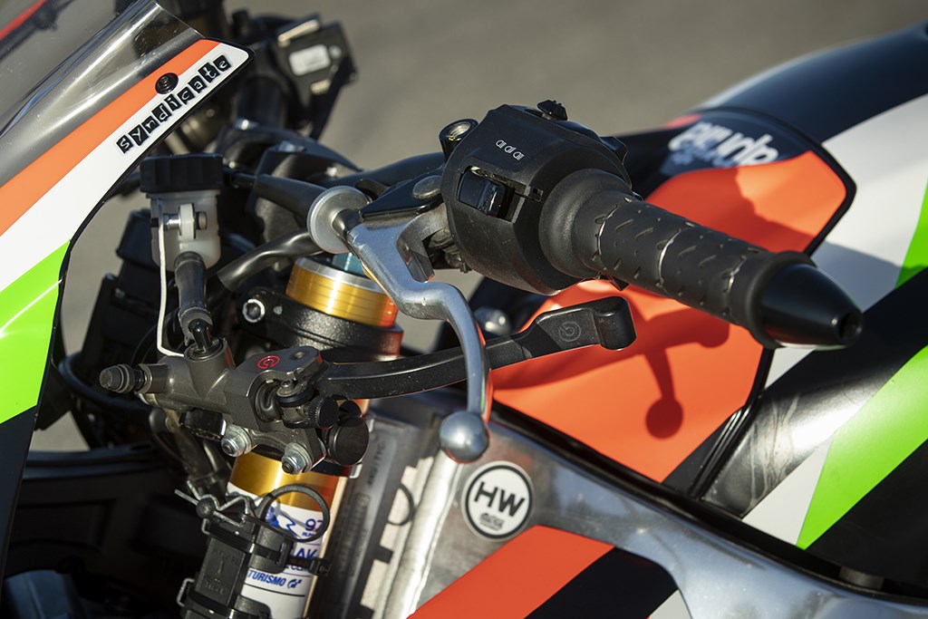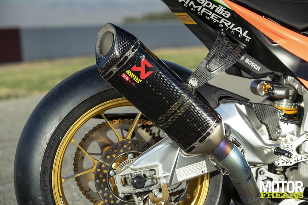 Het uitlaatsysteem is het enige wat je als 'raceonderdeel' zou kunnen tellen. De gesmede wielen en Öhlins vering is afkomstig van een RSV4 RF, de ECU is door Aprilia Racing geherprogrammeerd