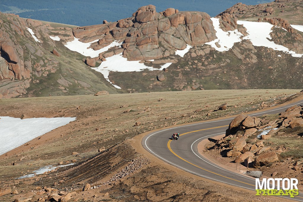 Vergeleken met dit is de Isle of Man TT 'a walk in the park'. bochten tellende circuit, dat pas in 2011 volledig is geasfalteerd, langs de berg omhoog tot een hoogte van 4.302 meter – de hoogste piek in het zuidelijke gedeelte van de Rocky Mountains.
