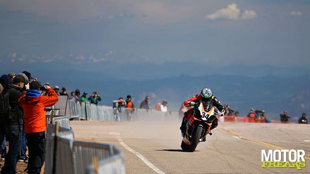 De race begint op een hoogte van 2.743 meter (voor je idee, da’s ongeveer de top van de Stelvio) en wordt dus compleet verreden op een hoogte die mensen naar adem doet snakken – wat ook voor de motoren geldt. En hoewel er talloze pogingen worden ondernomen om in de bochten vangrails en zelfs Airfences te voorzien zijn er nog steeds ontelbare onbeschermde afgronden waar elke fout wordt bestraft met een duik naar een zekere dood. Zelfs rijden over de relatief smalle weg naar de piek op een straatfiets, zoals ik heb gegaan, is een behoorlijk ontmoedigende ervaring. Van de gedachte hier te racen lopen de rillingen me over de rug – en ik spreek als tienjarige ervaringsdeskundige van de Isle of Man TT, met 4 top 10 finishes op mijn naam.