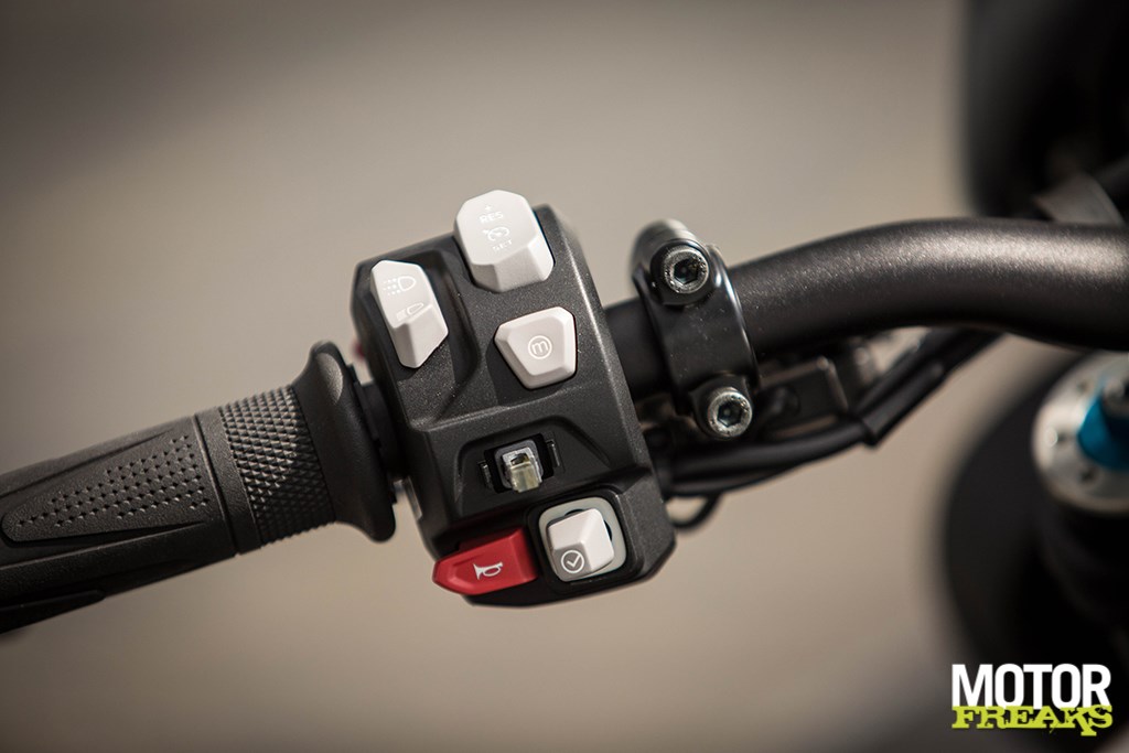 achterlijf en alle elektronica die men maar kon vinden. En dat is inclusief launch control en pitlimiter. Ja dat lees je goed, een pitlimiter. Op een straatmotor. Die lat zien we vanaf de begane grond niet meer terug.