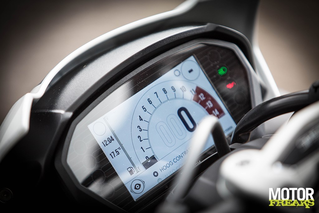 Ik doe nog even een rondje. Okedoeier doorheen met een gemak, zoals je zelden ziet. En Triumph heeft ook een goede keus gemaakt daarbij vooral te focussen op daadwerkelijk gebruik oftewel gewoon op de openbare weg. Met de menu’s kun je ‘m braver en stouter maken,zet je alles open in Rider modus, dan komt het heel aardig in de buurt van de hooligan die Triumph graag zou willen zien. En we hebben al eens eerder gezien dat juist een ogenschijnlijk rustige jongen stiekem toch de snelste of meest makkelijke blijkt te zijn; denk nog maar eens terug aan de ‘Total Control’ filosofie van een bepaald Japans merk: niet de wildste, vaak stiekem toch de snelste.