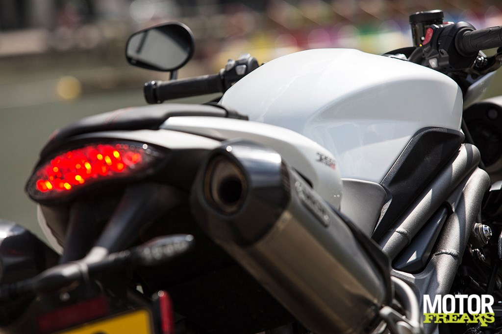 Misschien was het geen goed idee om van de Street Triple direct op de Speed te stappen. Natuurlijk, hij gaat harder met minder moeite, wat te merken is aan m’n kruissnelheid, maar het is nu juist die schijnbare moeiteloosheid die ‘m een beetje eh… minder frivool laat aanvoelen. Wil je echt het idee krijgen dat je ‘m alle hoeken van de kamer laat zien, dan zal je er echt hard aan moeten trekken.