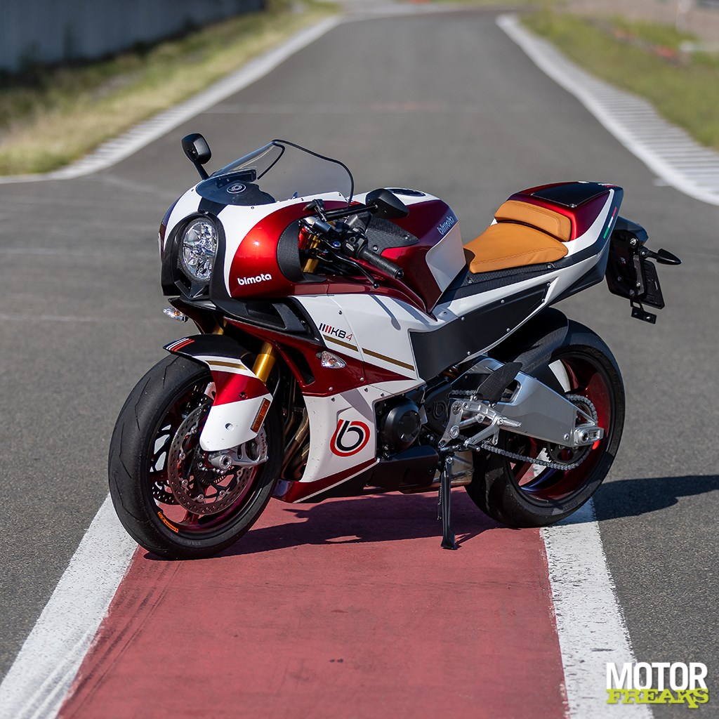 Nu hadden we eerlijk gezegd niet verwacht ooit de kans te krijgen daadwerkelijk met een nieuwe Bimota te kunnen rijden, ondanks dat Kawasaki nu een flinke vinger in de pap te brokken heeft en de productie flink heeft opgeschaald. Met prijskaartjes van dik boven de € 40.000 zijn en blijven het motoren voor de happy few en zijn boekhoud-technisch demo’s totaal niet interessant. Tot begin dit jaar bij Kawasaki in Hoofddorp een KB4 wordt gespot. Of dat een demo is en of we die niet eens aan de tand zouden kunnen voelen. Op beide vragen volgt een “ja”, waarna de agenda er meteen bij wordt gepakt en een termijn wordt ingepland. De periode is ook nog eens heerlijk lang en valt precies samen met een Inter-Track event op Mettet, waar Ron al een circuittest heeft gepland.