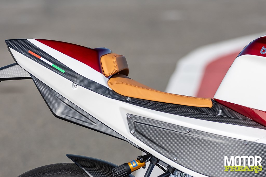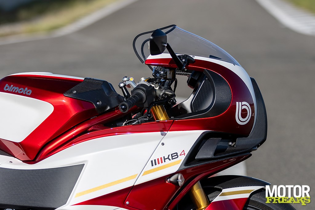 Wanneer ik enkele weken later oog in oog sta met de KB4 ben ik enorm onder de indruk van deze Italiaanse schone uit Rimini. Het CNC-freeswerk is waanzinnig fraai, evenals alle kuipwerk dat uit carbonfiber is opgetrokken, zelfs de kleinste afdekkapjes zijn van het exotische goedje gemaakt. Tot in het kleinste detail lijkt overal ontzettend goed te zijn nagedacht en zo’n beetje alles is instelbaar, van de
