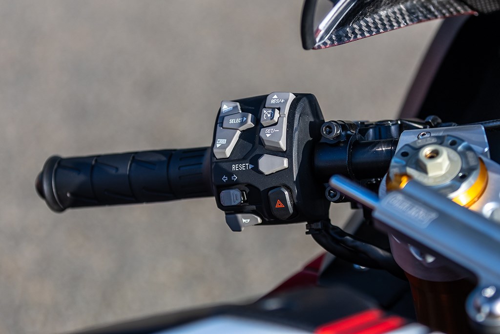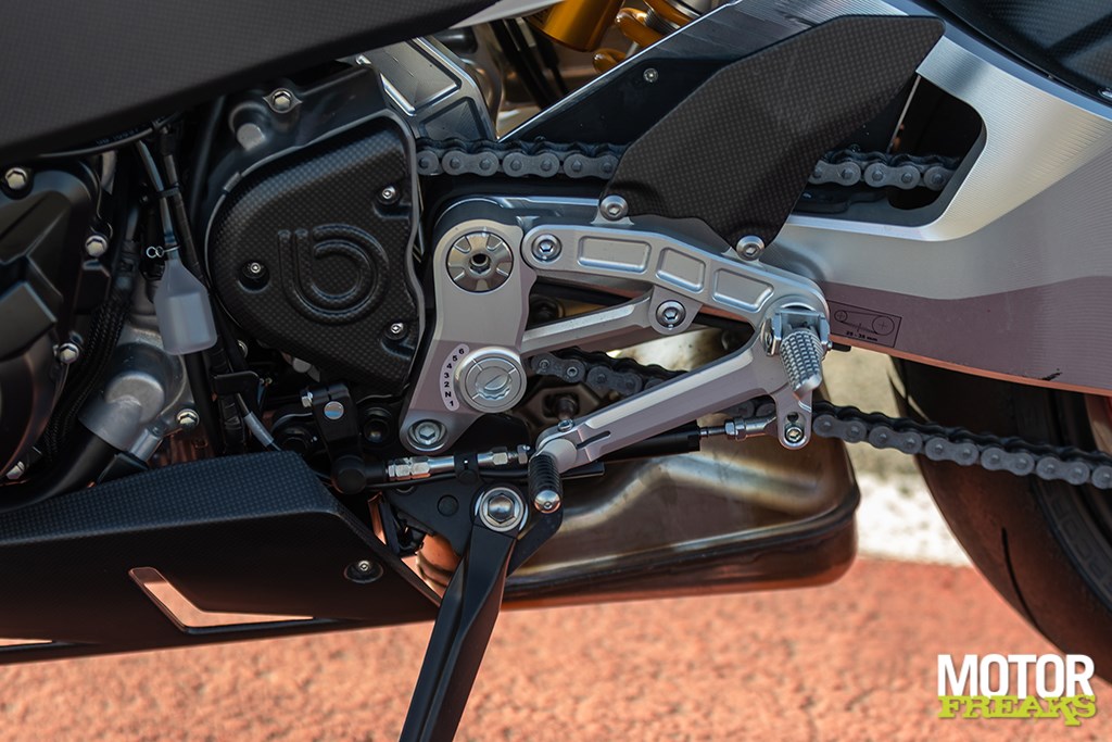 De gen.1 up/down quickshifter (die pas boven de 3.000 tpm mag worden gebruikt) deed het prima. Brembo remmelarij, wat moet je daar nog van zeggen?