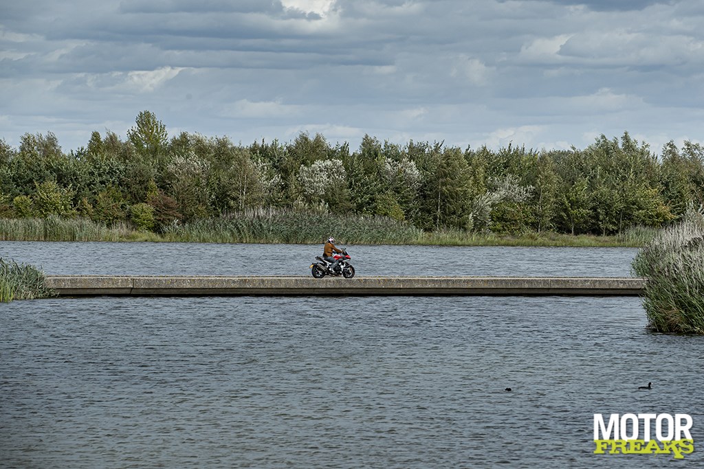 Want geloof me: tenzij je d'r echt ook offroad mee wilt gaan (als in: onverhard, de Dakar gaat je echt niet lukken) komt dit Italiaans-Japanse monster pas dán echt helemaal tot zijn recht: een bizarre symbiose van Italiaanse excentriciteit en Japanse brute kracht, verpakt in een motor die stuurt, remt en accelereert op een niveau waar vrijwel geen concurrent bij in de buurt komt. Na in één dag tijd bijna 350 km met 'm te hebben doorgebracht is het voor mij wel duidelijk: de Bimota Tesi H2 TERA is geen allroad in de letterlijke zin, maar een unieke rijdende ervaring, buitencategorie in alle opzichten – en met afstand de meest indrukwekkende straatlegale motorfiets die ik ooit heb gereden.