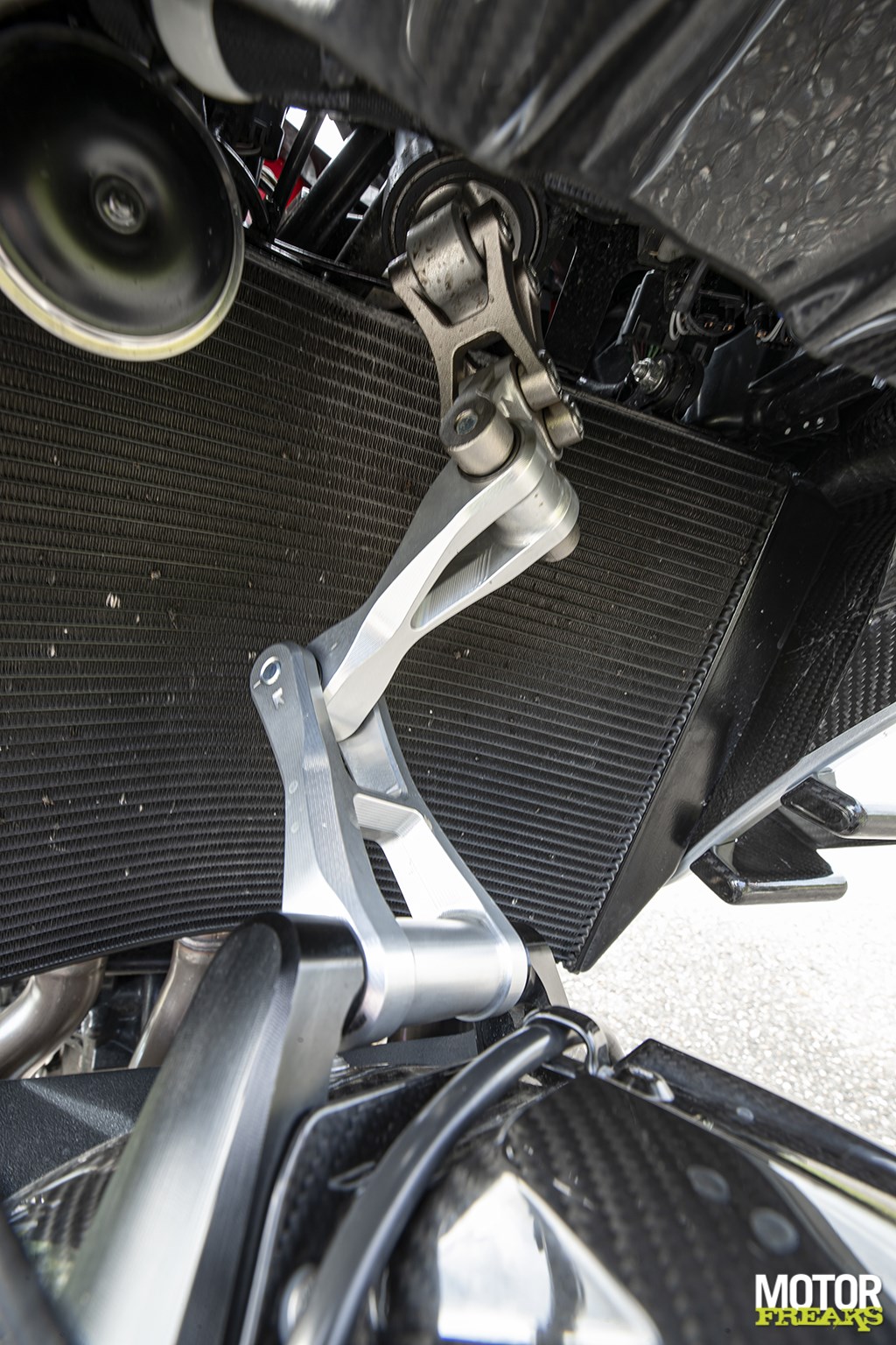 Door het motorblok als dragend element te gebruiken, is de massacentralisatie beter dan ooit. Waar het L-twin formaat van de Ducati-Tesi altijd een uitdaging was voor de stuureigenschappen, is dat probleem hier opgelost. En over dat blok gesproken: zoals Marconi al liet vallen tijdens de presentatie van de Tesi H2 in het najaar van 2019 is de Supercharged vierinlijn iets milder