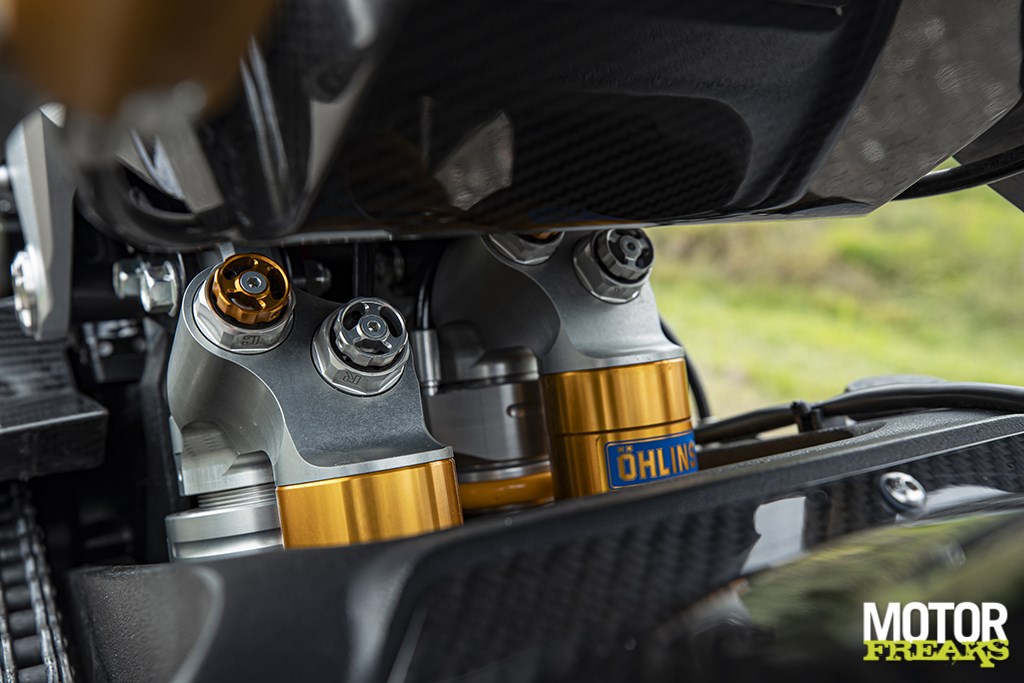| Vering voor | Swingarm met naafbesturing, volledig instelbare Öhlins TTX36 monoshock |