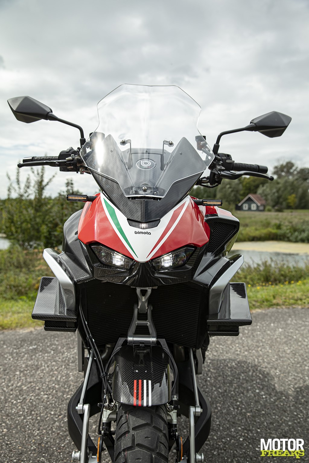 Ten opzichte van de Tesi H2 heeft Bimota de stuuruitslag van 27° naar 35° vergroot, wat de motor met manoeuvreren een stuk wendbaarder maakt. De iets langere veerwegen hebben trouwens amper invloed op de gewichtsverdeling gehad, die is met 52,5/47,5% een fractie naar achteren verlegd, terwijl de wielbasis met 1.445 mm lekker kort is gehouden. Wel brengt de TERA iets meer