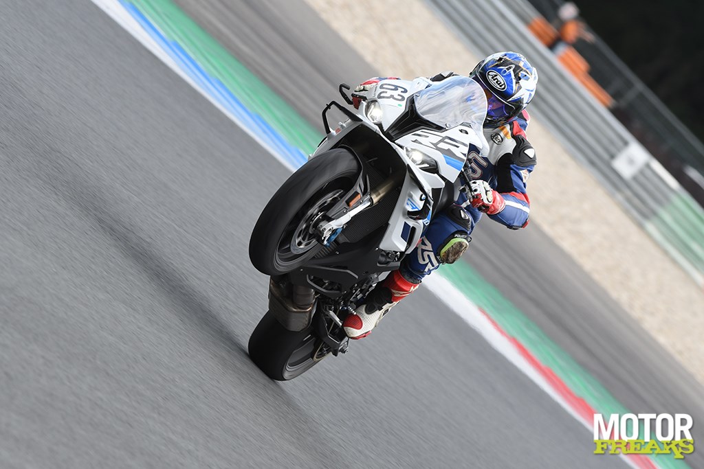 We besluiten om onze planning – Freaks getrouw – maar overhoop te gooien en de tweede sessie toch maar wel van motor te wisselen. Een goed uurtje later stuur ik de M 1000 R voor de eerste keer door de pitlane om zelf te voelen wat Dirk bedoelt, en dat duurt welgeteld maar 2 bochten. Na de haarbocht kom je via pit exit op de baan en dan accelereer je door Madijk naar de eerste