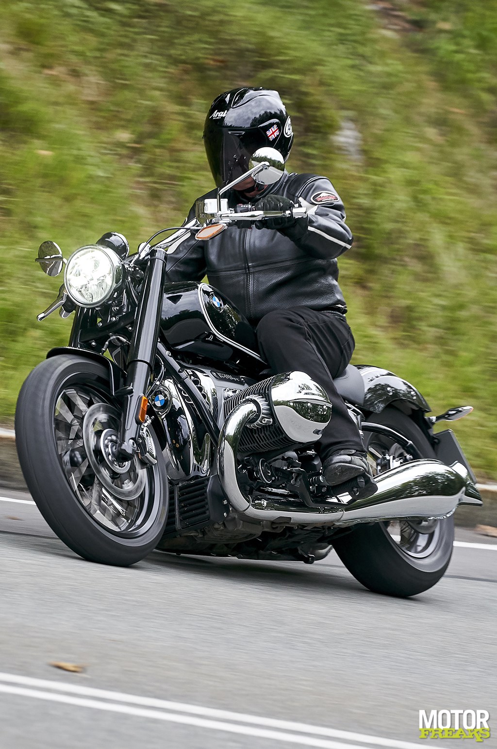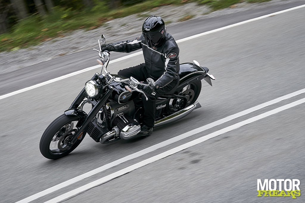De R 18 stuurt goed, opnieuw ondanks de lange wielbasis, maar geeft er de voorkeur aan om op het gas door de bocht te worden gestuurd. Rijdt in een hoge versnelling en de 19” Bridgestone voorband wil van onder je vandaan gaan, waar als je terugschakelt en op het gas blijft hij zich veel beter in z’n element voelt. Daarmee is niet gezegd dat je ‘m als een sportfiets moet rijden wat ‘ie niet is – zoals Markus Schramm het stelde, het was de missie van BMW om een Cruiser te produceren die niet zoals de anderen is, en het resultaat is een pure allrounder die prettig te rijden is, vooral dankzij die grandioze motor.