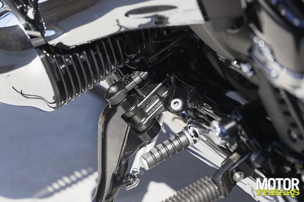 Ondanks het forse rijklaargewicht van 345 kilo dat tot stilstand moet worden gebracht, doet het door Brembo ontwikkelde remsysteem wat het moet doen, hoewel het gebruik van de 300 mm schijf achter geen overbodige luxe is in het geval van een noodstop, of wanneer je tot het laatste moment wilt wachten voor in een haarspeldbocht het anker uit te gooien. Bij normaal gebruik is alleen de voorrem voldoende, mede ook omdat het een gecombineerd remsysteem is. Maar goed, want de achterrem zit (net als de schakelpook) op een onmogelijke positie. De slipperclutch zorgt ervoor dat de achterkant niet gaat stempelen wanneer je te