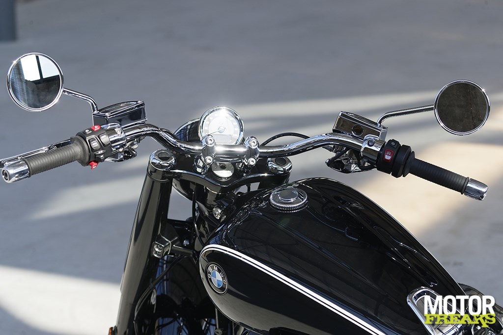 BMW is met toonaangevende toeleveranciers in zee gegaan, zoals Vance & Hines, Roland Sands etc., die voor de R 18 talloze accessoires hebben ontwikkeld, waaronder verschillende Munstang zadels, hoewel tijdens de presentatie niet werd gespecificeerd of daar ook zadels specifiek voor langbenige motorrijders tussen zitten. Wel werd benadrukt dat er verschillende sturen leverbaar zijn, hoewel ik ook hier van mening was dat het standaard stuur prima voldoet. Het mag dan wel zo breed zijn als een Smart lang is, maar dat is niet ten koste van het comfort gegaan. Het stuur naar je toe is gebogen en dat zorgt voor een ontspannen zit.