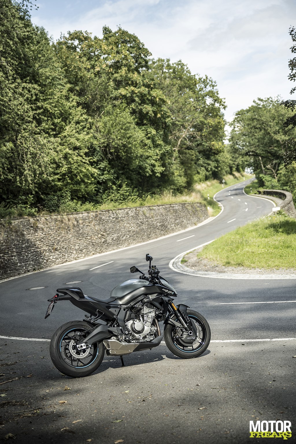 Stuurdemper is cool, maar volgens ons geeneens noodzakelijk. Eenmaal ingeremd was de J.Juan remmelarij top.op de maximale 70 kW zijn ontwikkeld (de intentie is om het blok volgend jaar ook hier in Europa op de volle 70 kW te zetten), wie ‘m terug wilzetten naar 35 kW zal nog even geduld moeten hebben: de A2-kit komt pas begin 2026 leverbaar.