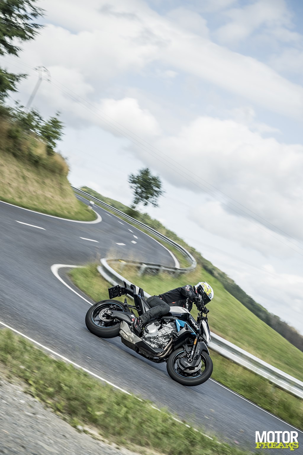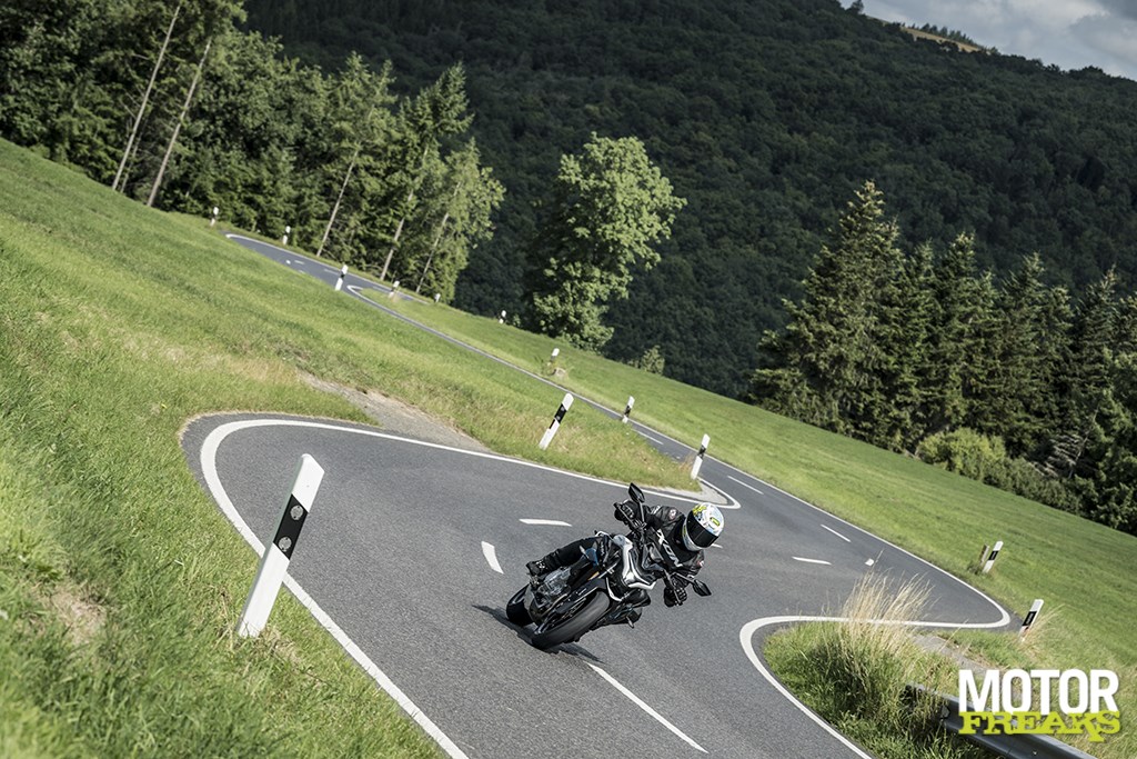 Het enige dat ik in het van-dik-hout Luxemburg TT tempo miste was een toprush bovenin, een trap onder je reet die je krijgt als er een naverbrander wordt aangezet, maar dat is meteen ook een megacompliment aan het rijwielgedeelte. De 675 NK stuurt zó ontzettend makkelijk en voelt daarbij zó ontzettend vertrouwd aan, dat je het gas bijna continue vol tegen de stuit open kunt houden. Wat ook aan het verbruik af te lezen was, dat met 8,9 liter dik boven het geclaimde verbruik van 5,5 liter op 100 km lag, maar dat even terzijde.