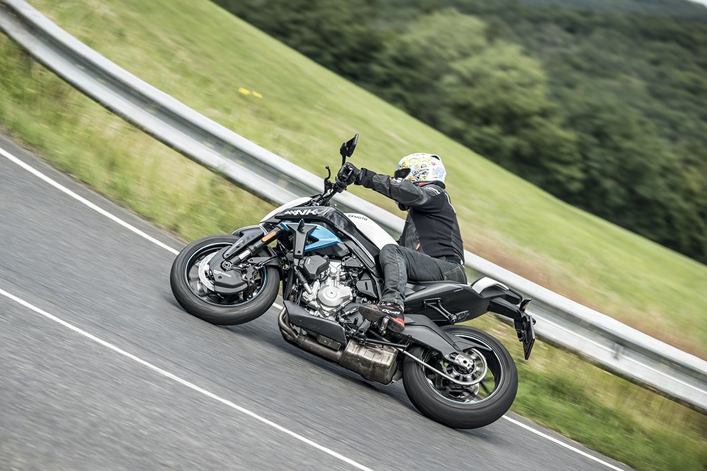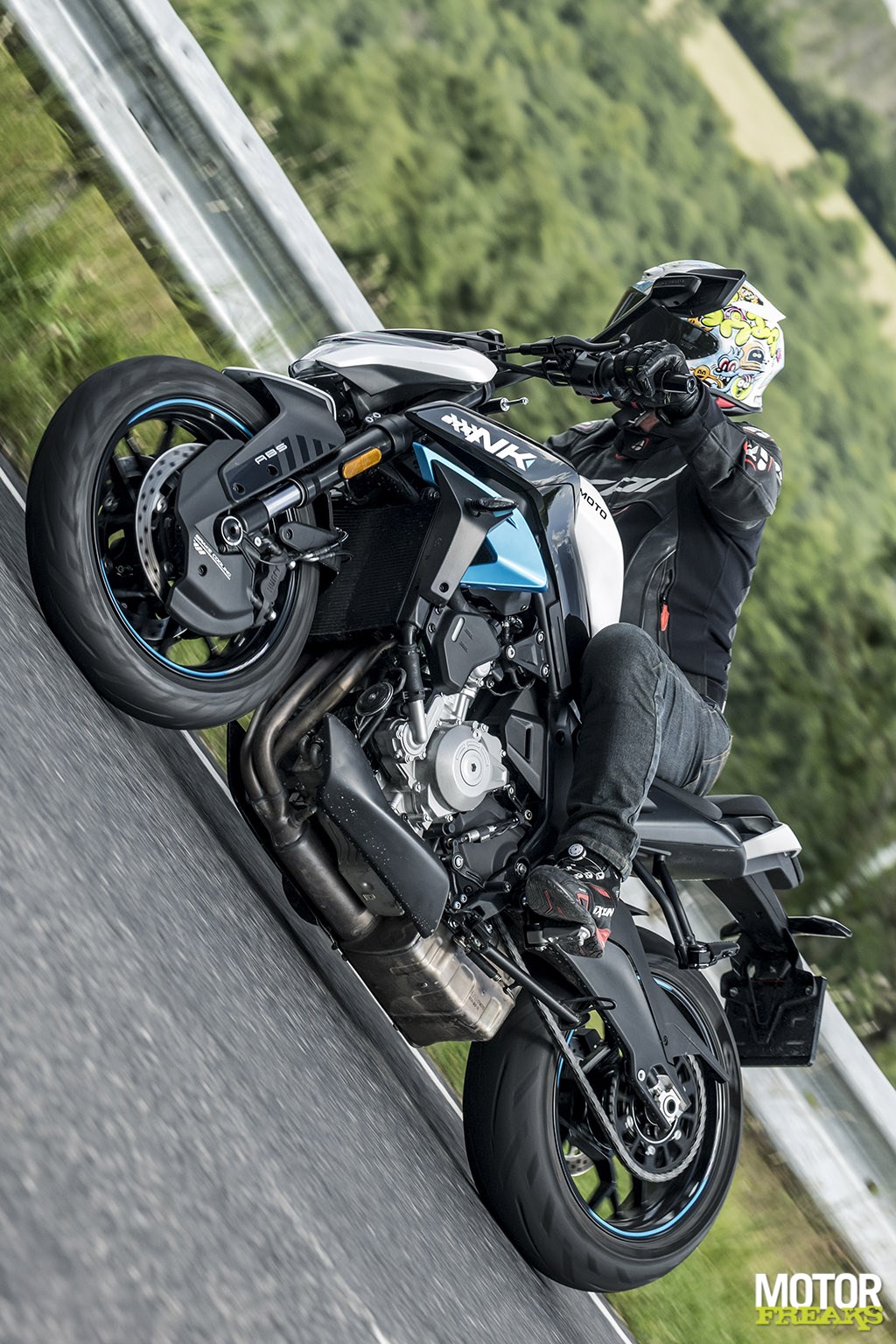 Niet alleen had ik de 675 NK totaal verkeerd ingeschaald, de focus te veel op de Street Triple R gelegd (waar CF modellen als de MT-07, Z650, Trident 660 en CB650R als de directe concurrenten ziet), maar dat ‘slechts’ 70 kW (vooruit, nu dus nog slechts 66 kW) blijkt in het Isle of Man TT-tempo juist z’n allersterkste troef te zijn. Juist omdat het vermogen zo goed is te behappen, heb je te allen tijde overzicht en controle om de 675 NK in elke hoek te smijten waar je maar wilt. De zithouding is mij persoonlijk met m’n 1.72 meter lengte op maat geschreven. Iets voorover, maar niet té en de driehoeksverhouding stuur, zadel en voetsteunen lekker compact, zonder dat het verkrampt op de lange duur. Het zadel is bovendien ruim genoeg om meerdere zitposities aan te kunnen nemen, waardoor je ook probleemloos plat op de tank achter het TFT kunt kruipen.