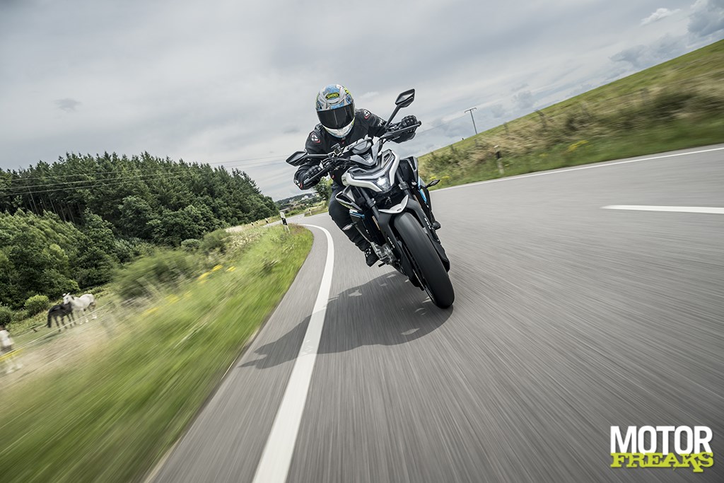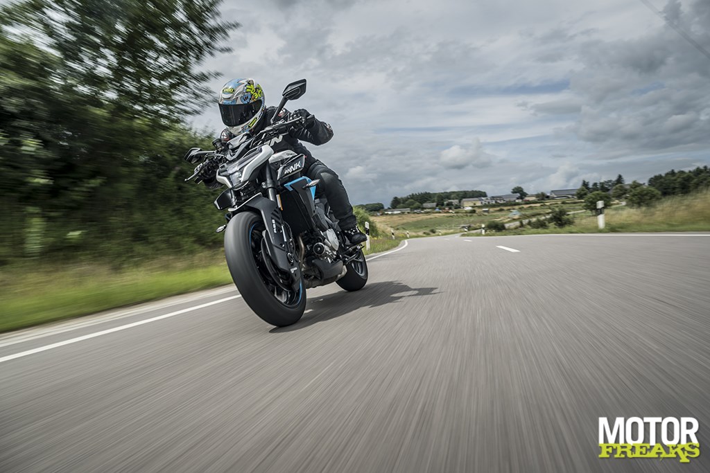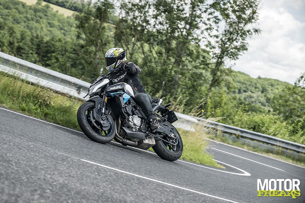 Het enige elektronische hulpje dat CFMOTO heeft voorzien is een in twee standen instelbare tractiecontrole, die daarnaast ook kan worden uitgeschakeld. Het switchen gaat tijdens het rijden eenvoudig met een schakelaar links op het stuur, maar om het uit te schakelen zal je wel stil moeten staan. Het overgrote deel van de test heb ik met de TC uit gereden, enerzijds omdat ik persoonlijk TC bij dit soort vermogens totaal overbodig vind en anderzijds omdat de 675 NK een zeer vertrouwenwekkende vermogensafgifte heeft,