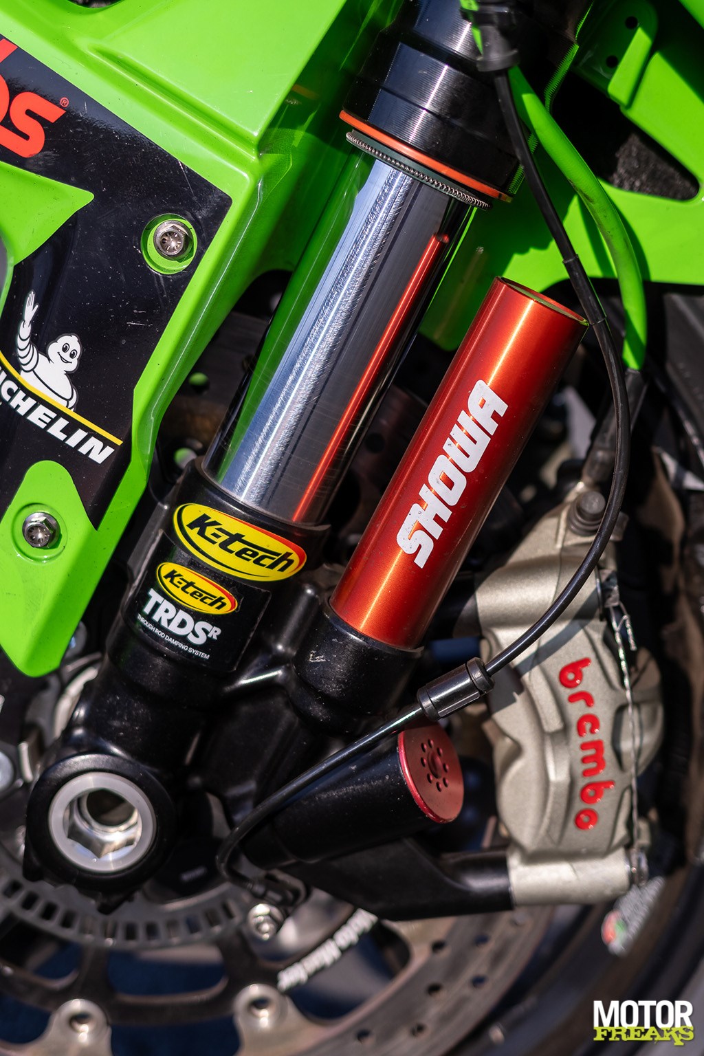 K-tech TRDS (True Rod Damping System) cartridges en achtershock (nieuwste ontwikkeling van K-tech met techniek vergelijkbaar zoals gebruikt in World Superbike en MotoGP).