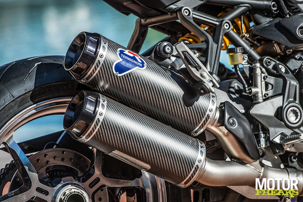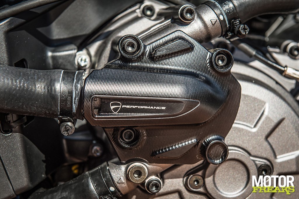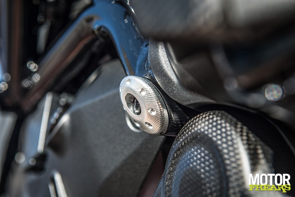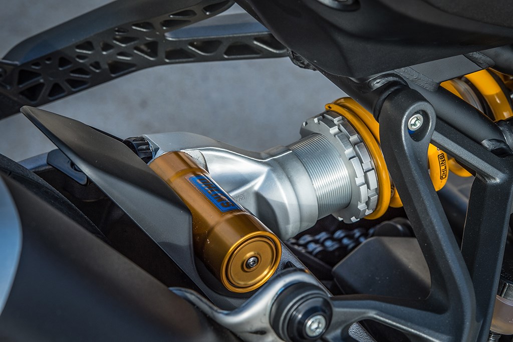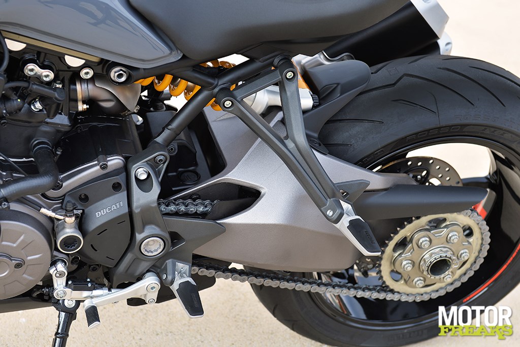 De quick shifter werkt net als bij de Panigale twee kanten op. De enkelzijdige achterbrug is forser uitgevoerd