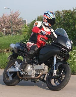 Dat gebeurde afgelopen najaar, toen Ducati de Multistrada 620 aan de wereldpers voorstelde. Leverbaar in twee uitvoeringen: de Multistrada 620 en de Multistrada 620 dark, waarbij beide modellen ook nog eens als 25kW versie leverbaar zijn. Nu wilde ik best de wijze woorden van Micha de Vries voor waarheid aannemen, maar ergens in mijn achterhoofd bleef toch dat stemmetje (verwend als dat we met de hedendaagse supervermogende motorfietsen zijn) zeggen: "Het is maar een 620." En alsof dat nog niet erg genoeg was, moesten we het ditmaal ook nog eens doen met de uitgeklede "Dark" versie die het met "slechts" één remschijf voor moet doen. Ze hadden er nog net geen 25 kW versie van gemaakt. Ik was dan ook razend benieuwd in hoeverre dit nieuwste familielid van de Ducati familie in staat zou zijn om Supersports te Pesten.