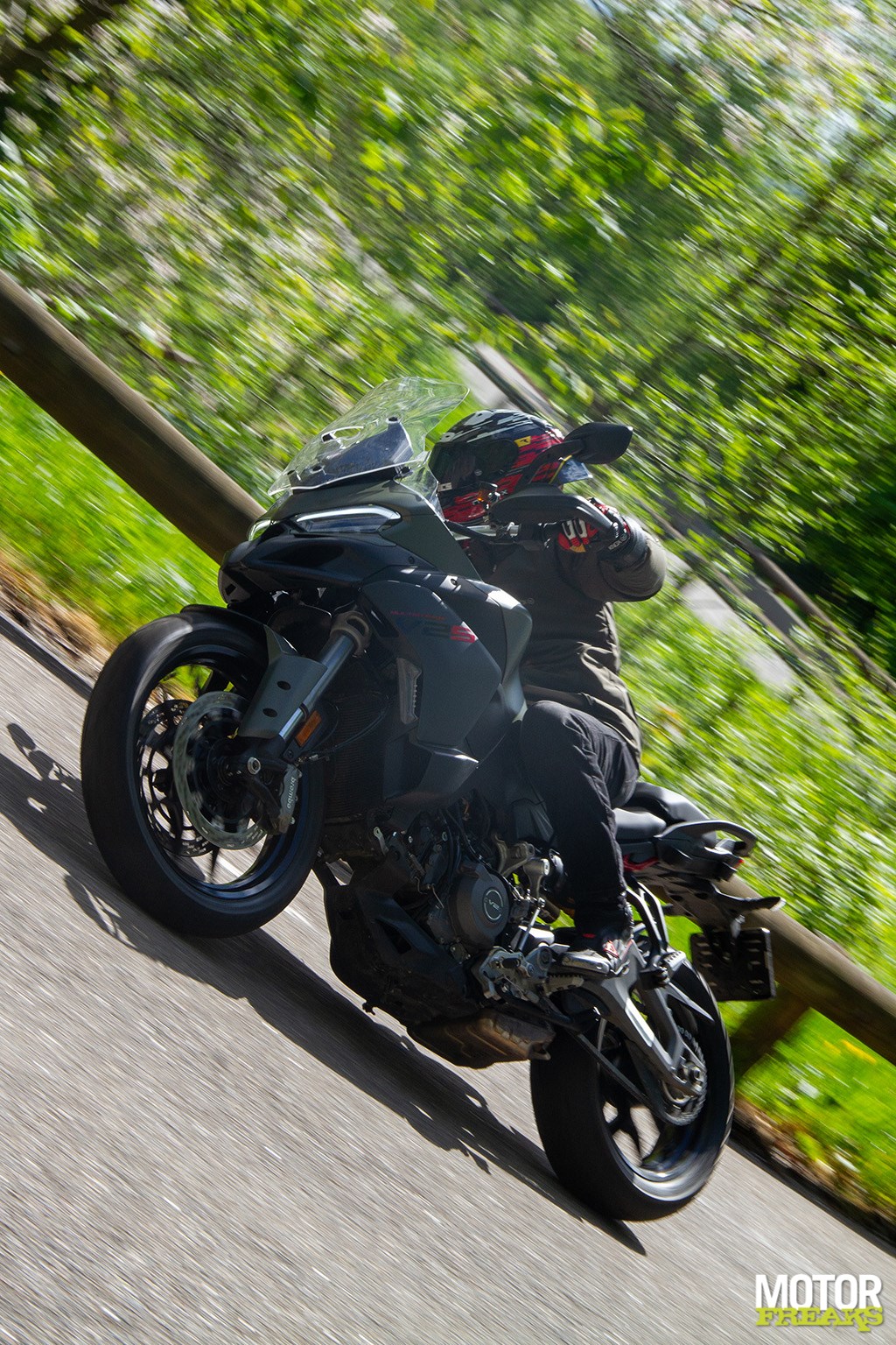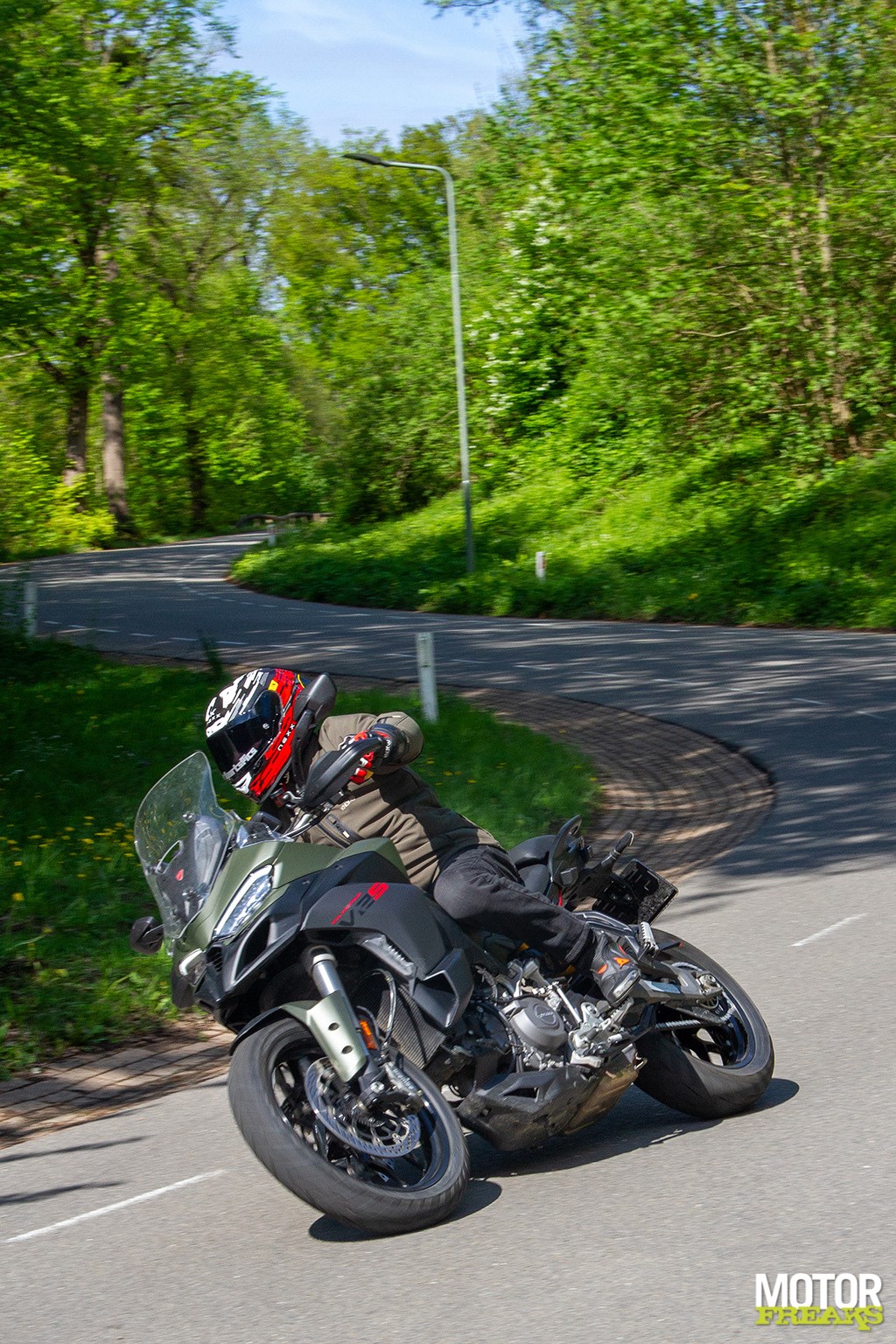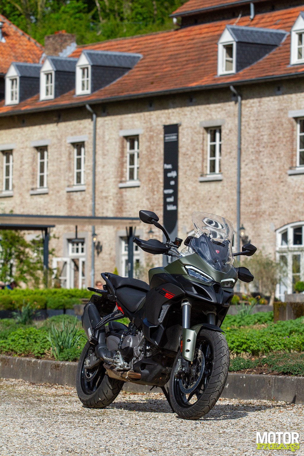 “Ik ben heel erg benieuwd wat je van de nieuwe Multistrada V2 vindt”, zegt Ronald van Vliet, eigenaar van Ducati Zaltbommel als ik me daar heb gemeld om de kaki-groene S-versie op te halen. “Ik begrijp je gevoel en volgens de hardcore Ducatisten is het nieuwe blok karakterloos, maar ga er maar eens mee rijden. Benieuwd of je er dan nog zo over denkt. Wat ik zelf merk is het enorme verschil in gewicht, dat maakt echt alles goed. Maar goed, jij bent de expert en dus ben ik razend benieuwd naar jouw mening.”