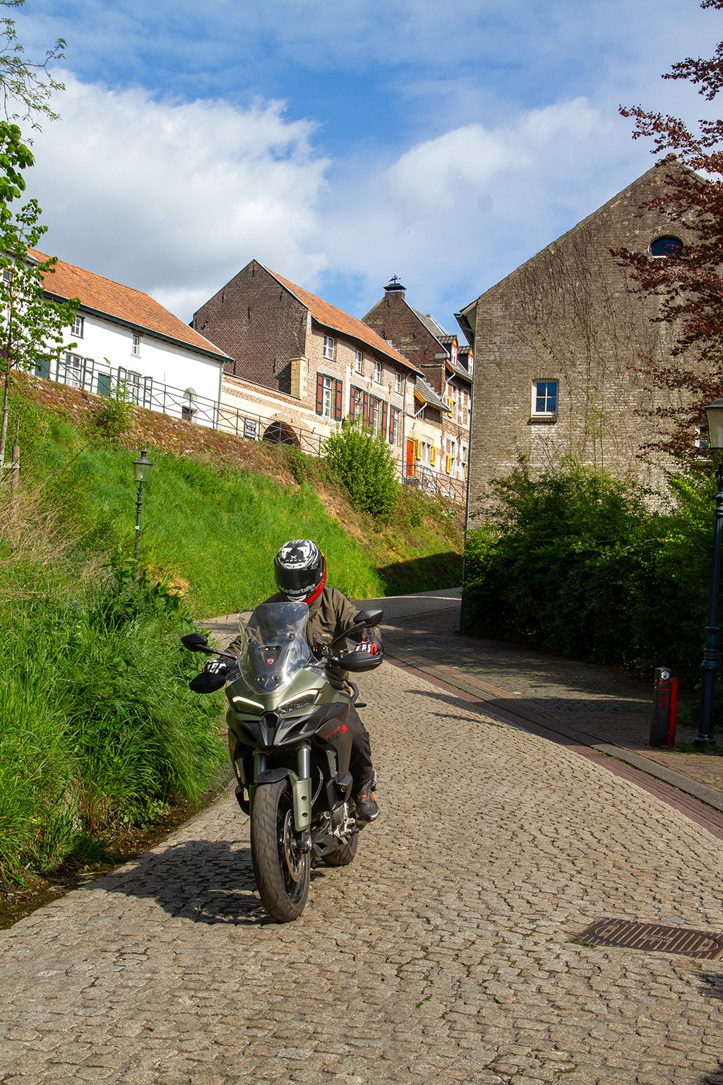 Ondanks dat het volop heeft geregend besluit ik aan het eind van de middag de terugreis lekker binnendoor te gaan, wat met de Multistrada V2 S absoluut geen straf is om te doen. Tuurlijk, ten opzichte van ideale omstandigheden is het tempo aangepast, maar de feedback van de Pirelli Scorpion Trail II banden is gewoon fenomenaal, waardoor ik ervan overtuigd ben dat het veel harder had gekund als ik dat zou hebben gewild. Hetgeen tijdens de volgende trip naar Zuid-Limburg onder droge omstandigheden wordt bevestigd. Ik weet, het neigt om vervelend te worden, maar niet normaal hoe ontzettend lekker deze compleet nieuwe