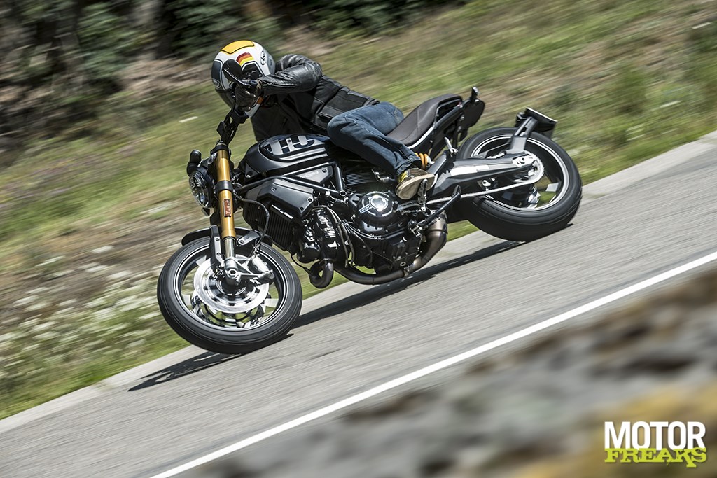 Qua looks heeft Ducati de spijker echt op z’n kop geslagen, retro met een sportieve kwinkslag, en het mooie is dat zich dat in de praktijk ook zo laat uitbetalen. Of je nou superrelaxt aan het rijden bent, of even ‘vandikhout’ een blokkie om wilt gaan, de 1100 Sport EVO doet ’t met speels gemak. De luchtgekoelde 1.079 cc V-twin levert 86 pk bij 7.500 omwentelingen per minuut, wat 9 pk meer is dan de 803 cc Scrambler, maar wat echt het verschil maakt is het koppel dat bij de eenliter versie 88 Nm bij slechts 4.750 omwentelingen per minuut is. Niet alleen heb je dus 20 Nm koppel meer, maar het is ook nog eens bij een veel lager