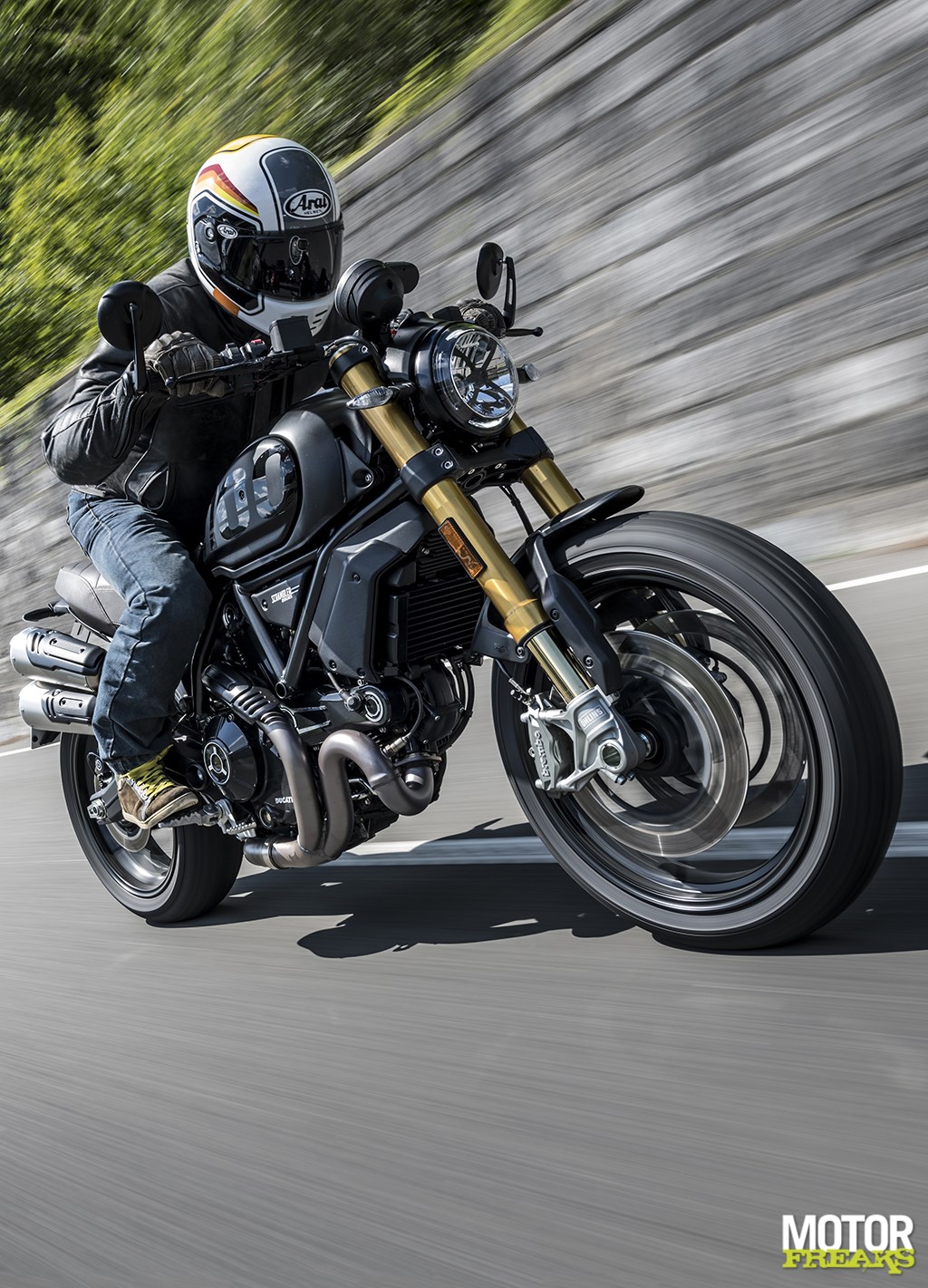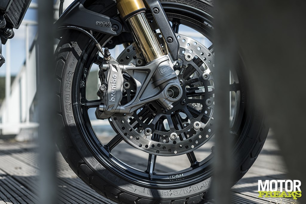 Ook iets te veel van het goede zijn de Brembo M4.32 Monobloc remmen die Ducati heeft voorzien. De remmen zijn echt supergoed, geven fantastische feedback en niet te vergeten een waanzinnige vertraging en hadden van ons een tien met een griffel gekregen… als we met een Monster of Streetfighter op pad waren geweest. Maar dit is geen Monster of Streetfighter, maar een Scrambler en het hele idee achter de Scrambler was toch ‘relax’ met een hoofdletter R? Een iets minder direct aangrijppunt zou in onze ogen beter bij de Scrambler hebben gepast, maar dat is het enige wat we op de remmen aan te merken hebben. En naast dat ze geweldig vertragen zijn ze ook van het welbekende Bosch bochten-ABS voorzien, wat het risico jezelf onderuit te remmen aanzienlijk heeft gereduceerd.