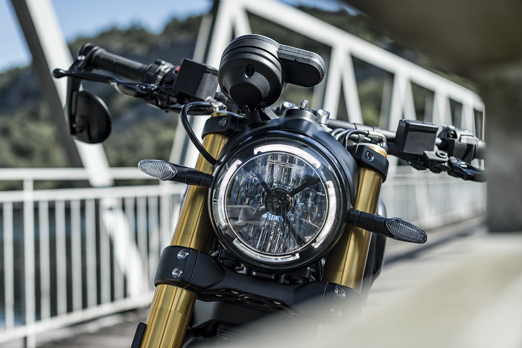 Buiten dat de kleurstelling van beide PRO versies is opgefrist heeft Ducati verder geen noemenswaardige aanpassingen aan het design gedaan. De voorkant van de 1100 PRO’s wordt opgesierd door een klassiek ogende ronde koplamp die van DRL Daytime Running Lights, ofwel dagrijverlichting (LED, uiteraard) en een X-vormige grill is voorzien. Aan de achterkant vinden we een ander handelskenmerk van de Scrambler, het fraaie achterlicht met unieke U-vormige lichtbaan, waarvan het ‘Ambilight’ effect is gecreëerd door een afgestompte verdelerkap te combineren met en 12-LED strip (18-LED voor het achterlicht).