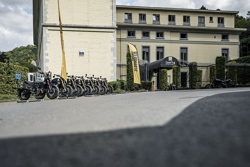 Wat Ducati daarentegen wel heeft aangepast is het zadel, dat nu anders gepolsterd is, waardoor je nu volgens de Italianen het urenlang moet kunnen volhouden. Nu gebied de eerlijkheid mij te zeggen dat de kleine 125 kilometer lange rit in de prachtige, zonovergoten en snikhete Ardennen rond Dinant te kort is geweest om daar een serieus oordeel over te vellen, maar dat ‘ie prinsheerlijk zit staat als een paal boven het Nieuw Amsterdams Peil, dat trouwens aan de lage kant stond waardoor het programma van de dag moest worden aangepast.