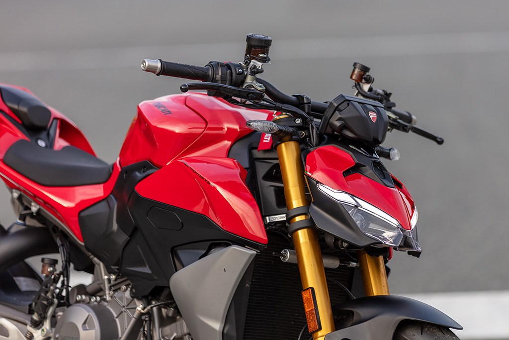 Het lijkt een flinke stap terug ten opzichte van de vorige V2, maar neem van ons aan...Streetfighter V2 op richt. Vooruit, het kan goedkoper. De standaardversie kost 2.300 eurootjes minder, en dan moet je het doen met een Marzocchi voorvork, Kayaba achtershock en een ouderwetse loodaccu – en dus 3 kilo extra gewicht.