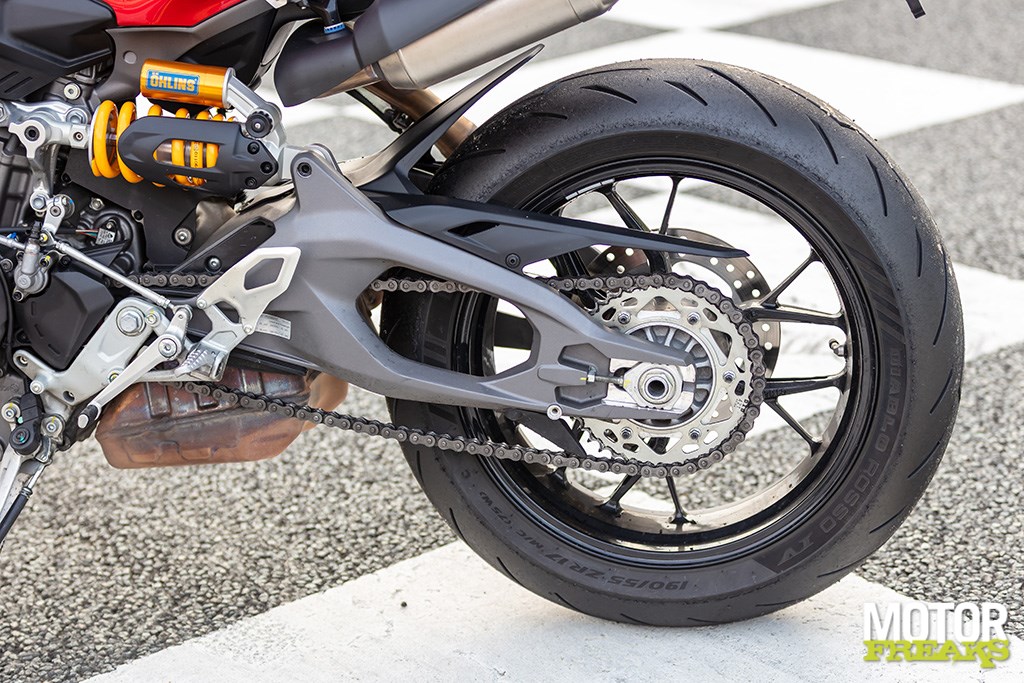 De nieuwe Intake Variable Timing (IVT) doet z’n werk goed. Het systeem verstelt de inlaatkleptiming tot wel 52 graden op basis van toeren en gasstand. Resultaat: soepeler onderin, krachtig bovenin. Het klassieke desmodromische systeem is dus verdwenen, en heel eerlijk: niemand zal het missen. Het ding rijdt gewoon een stuk fijner en is als klap op de vuurpijl ook nog eens een stuk onderhoudsvriendelijker, wat intervallen maar met name de complexiteit betreft. Het stellen van desmodromische klepaandrijving is een ingewikkelde en tijdrovende exercitie.