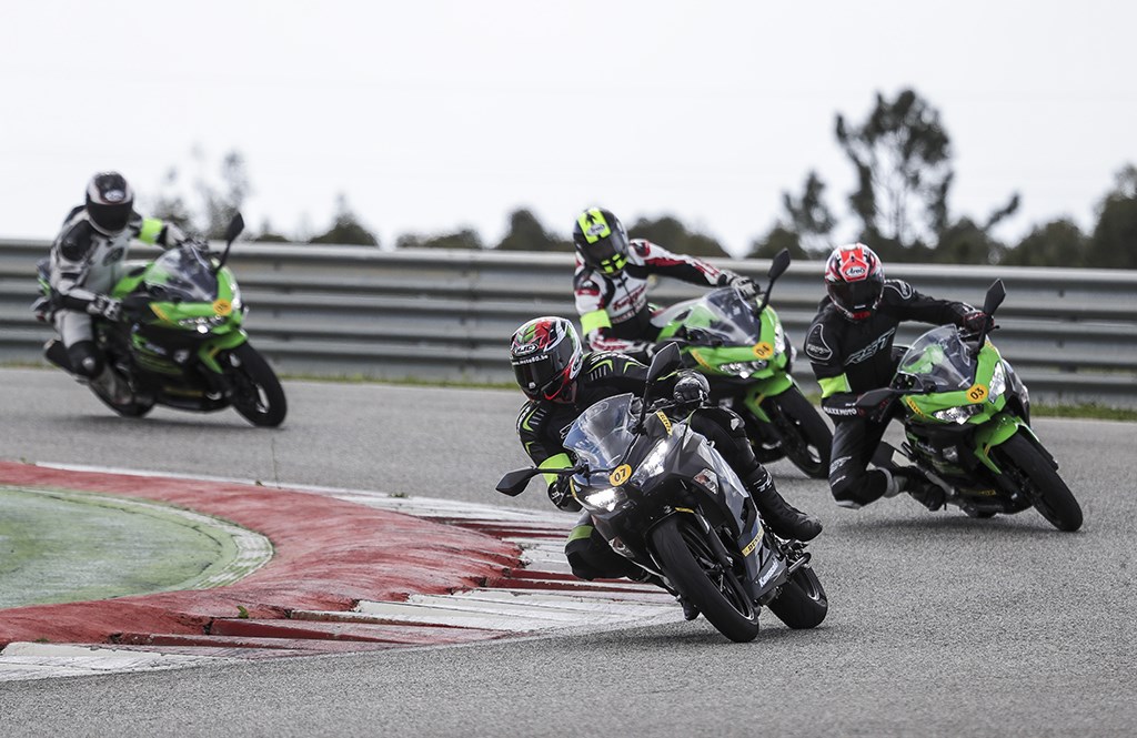 Vier journalisten/coureurs, vier Ninja 400's. Wat denk jij dat er gebeurt?Sportsmart 2 Max. maar wat je er voor terugkrijgt is veel belangrijker. Bovendien zullen de beoogde TT rijders niet echt malen om levensduur, die gooien er liever een nieuw setje op als dat betekent dat ze daarmee wel maximaal kunnen knallen.